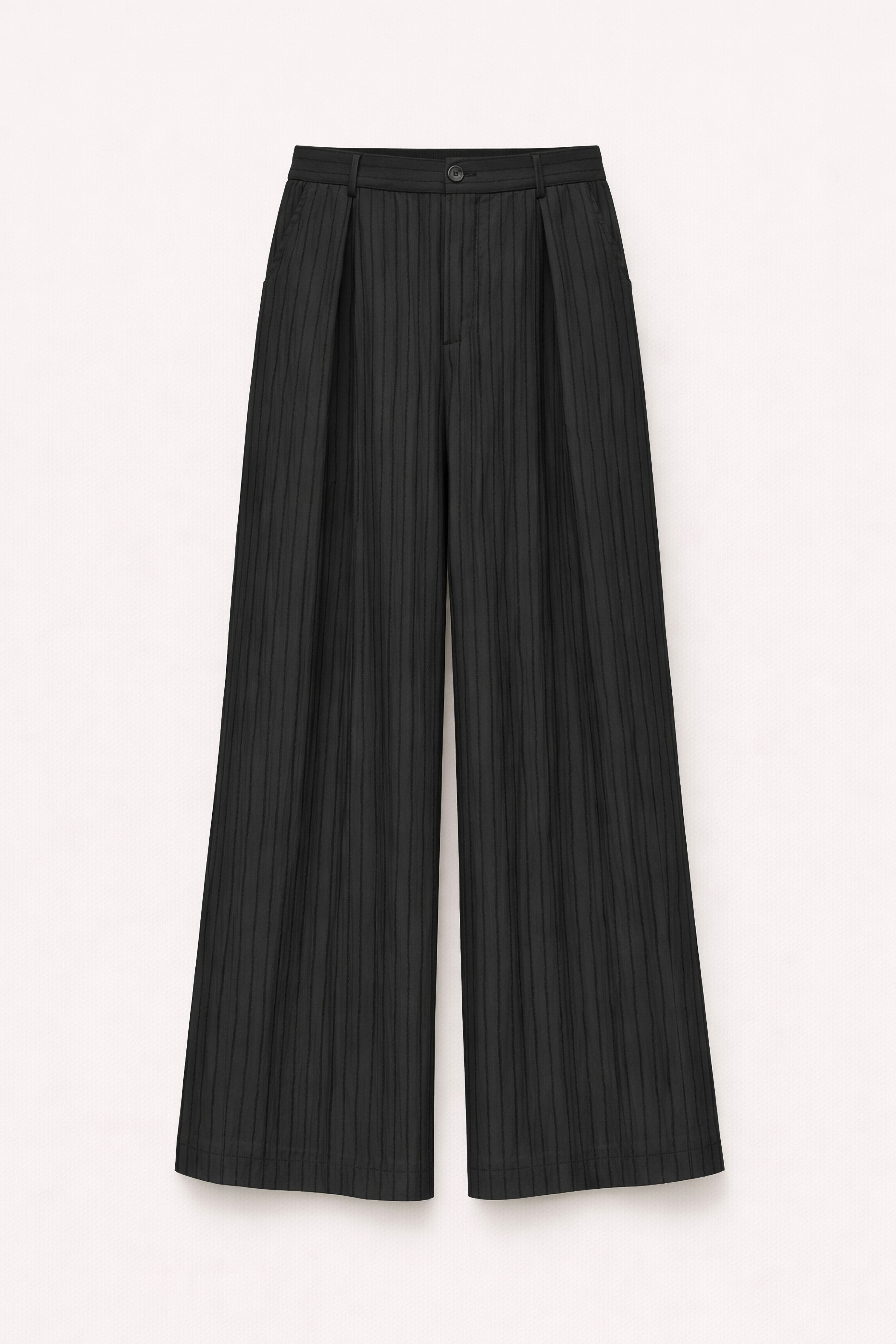Inset side pockets. Wide leg.