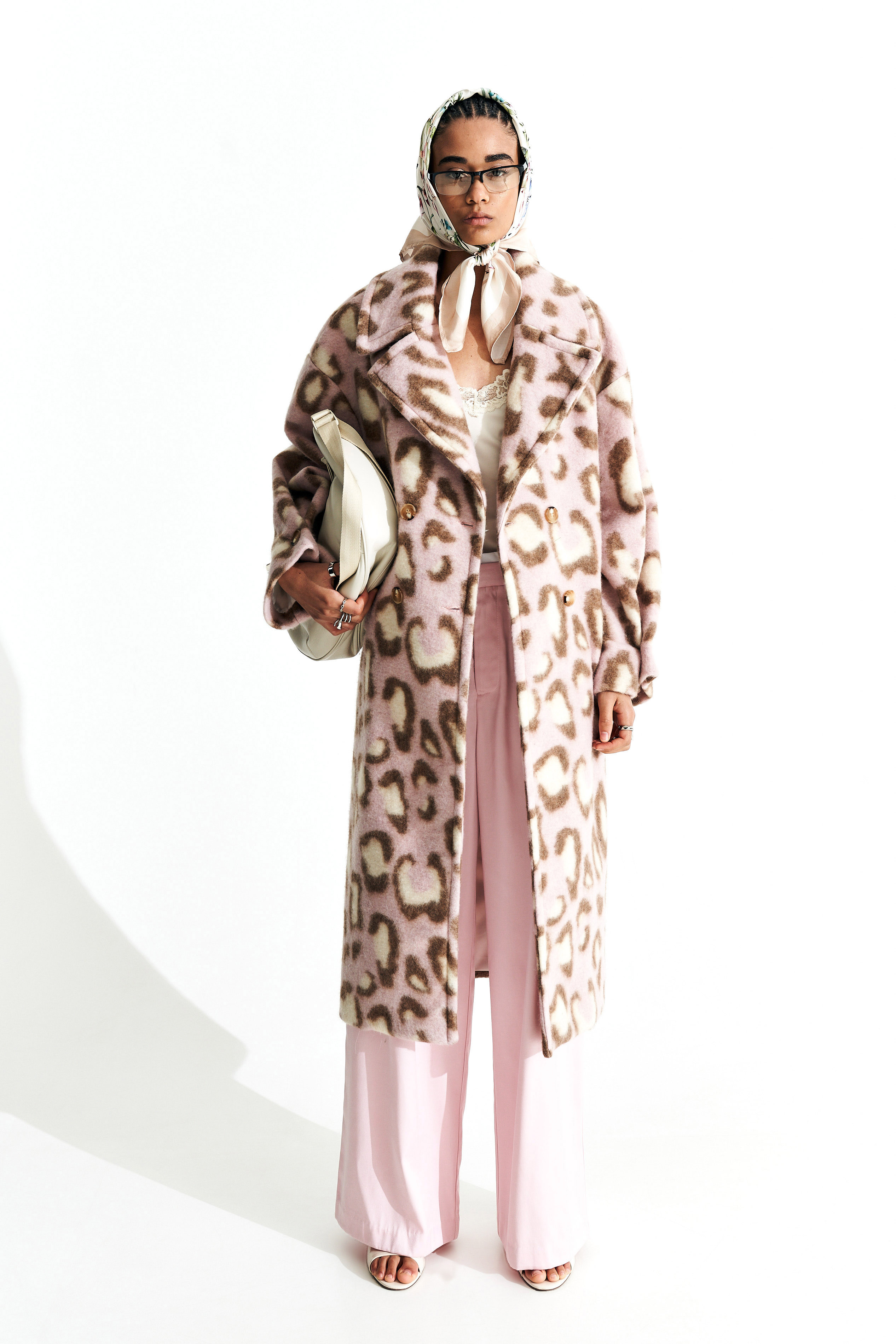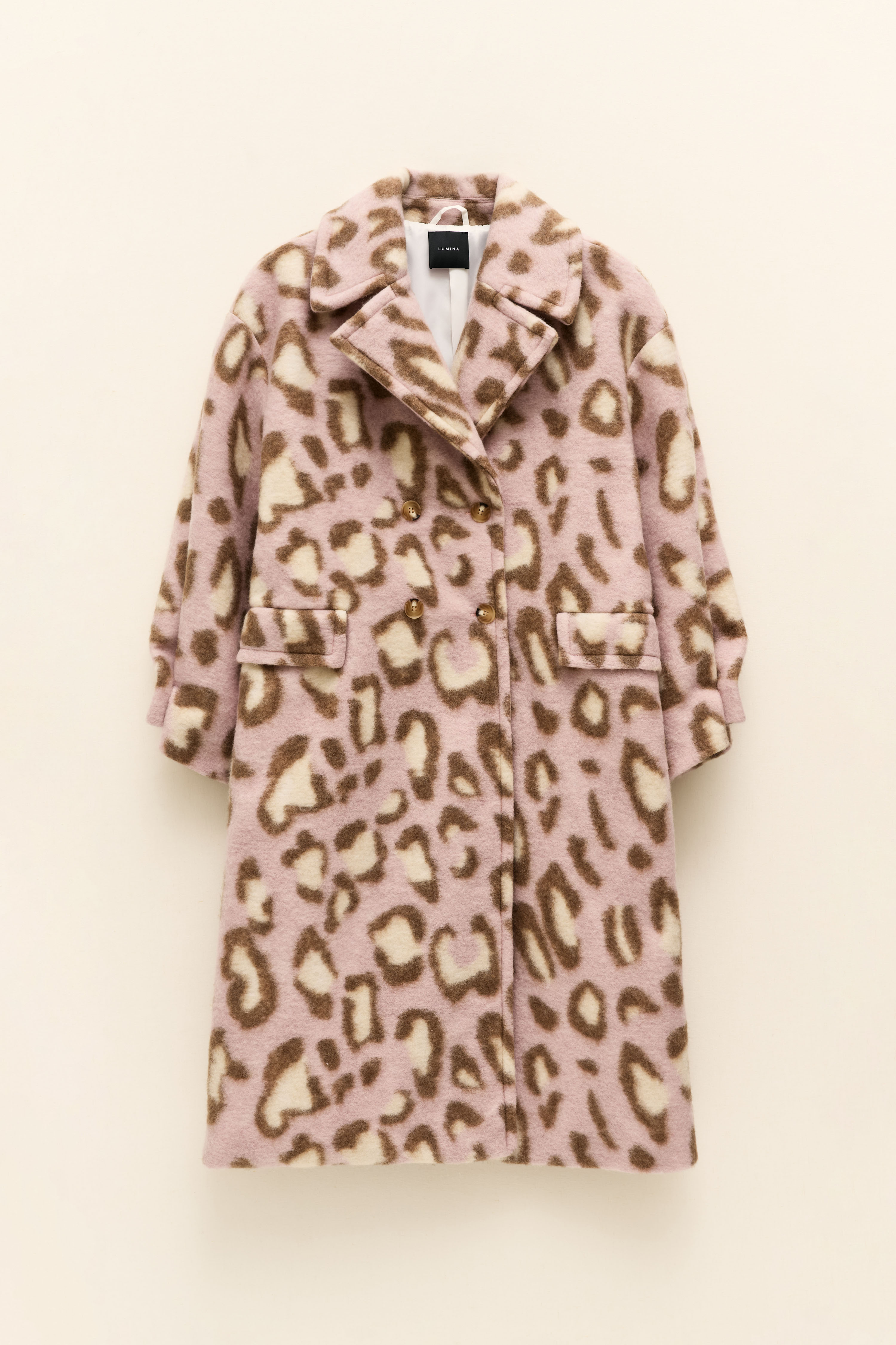 Wool blend coat with animal print.