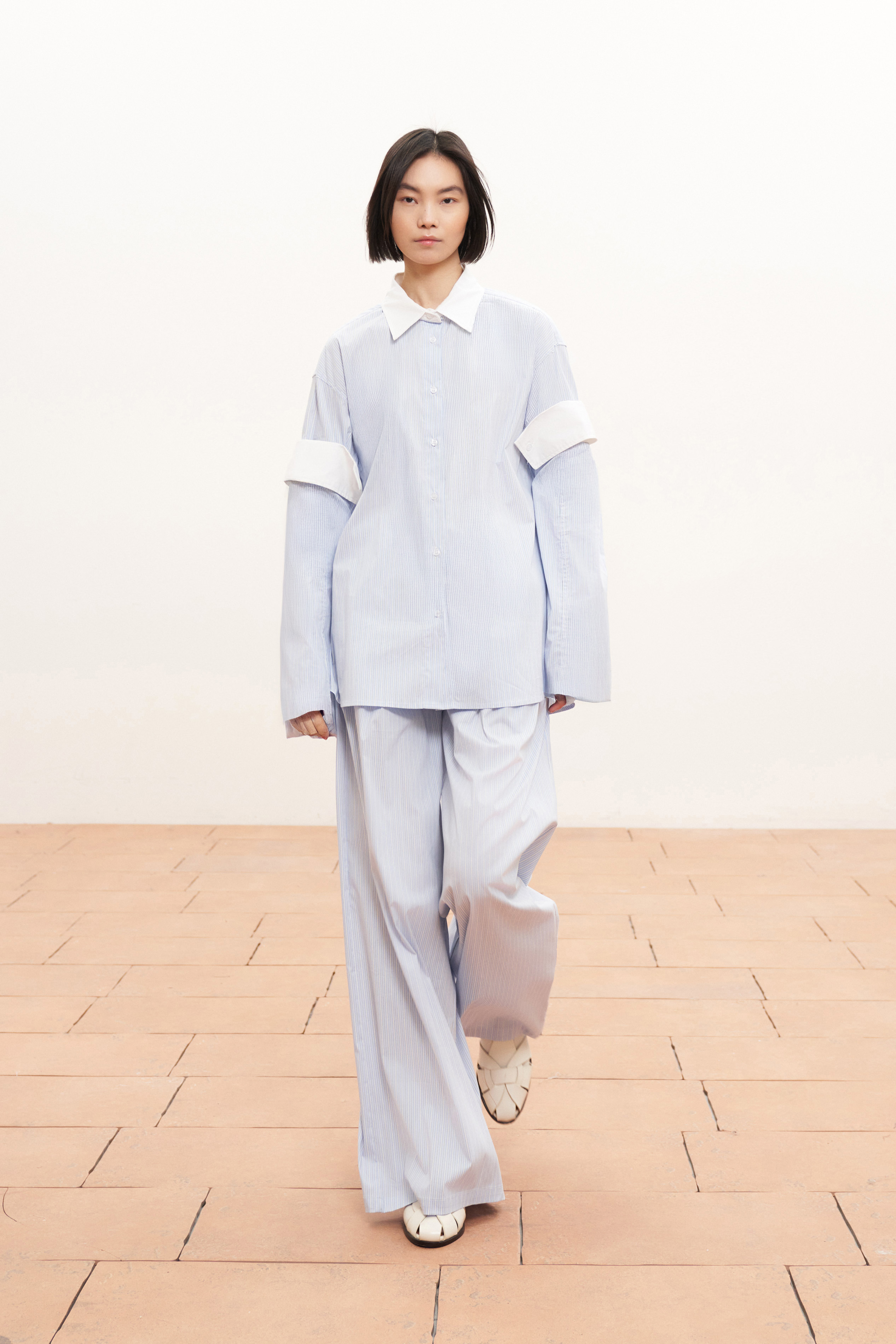 Contrasting cuffs and collar detail.