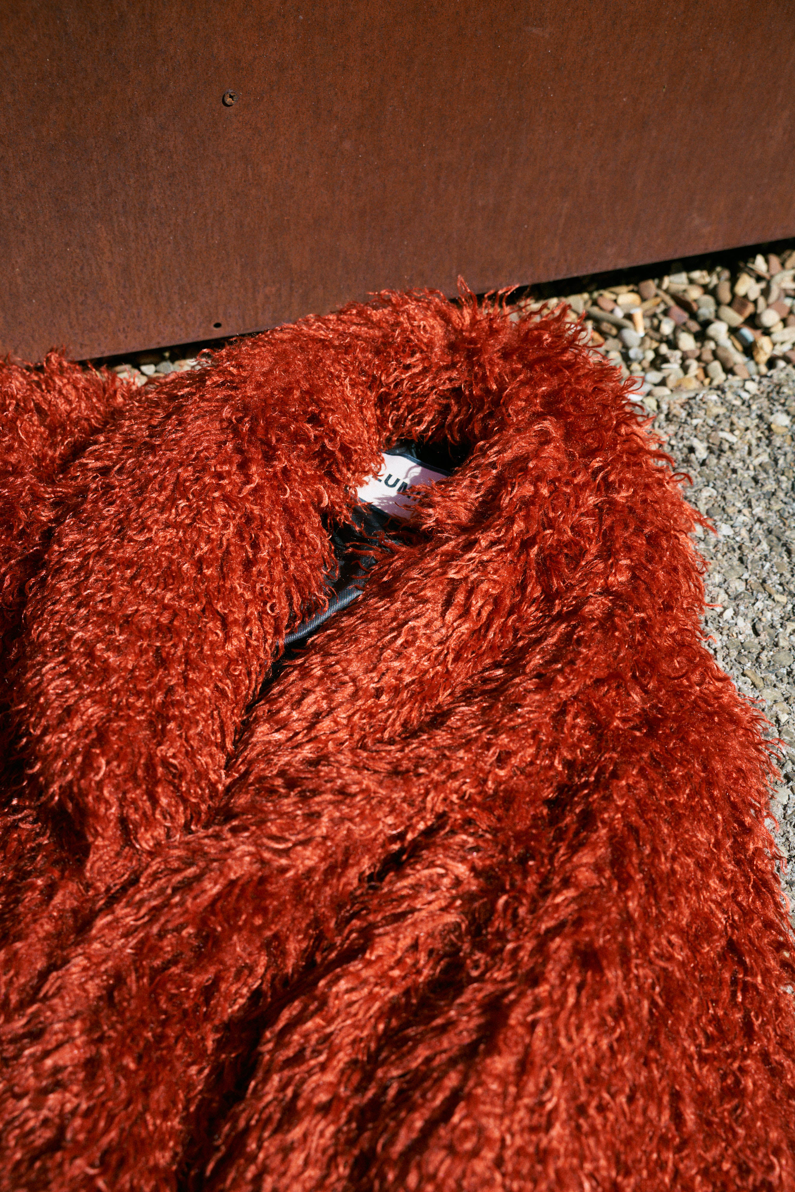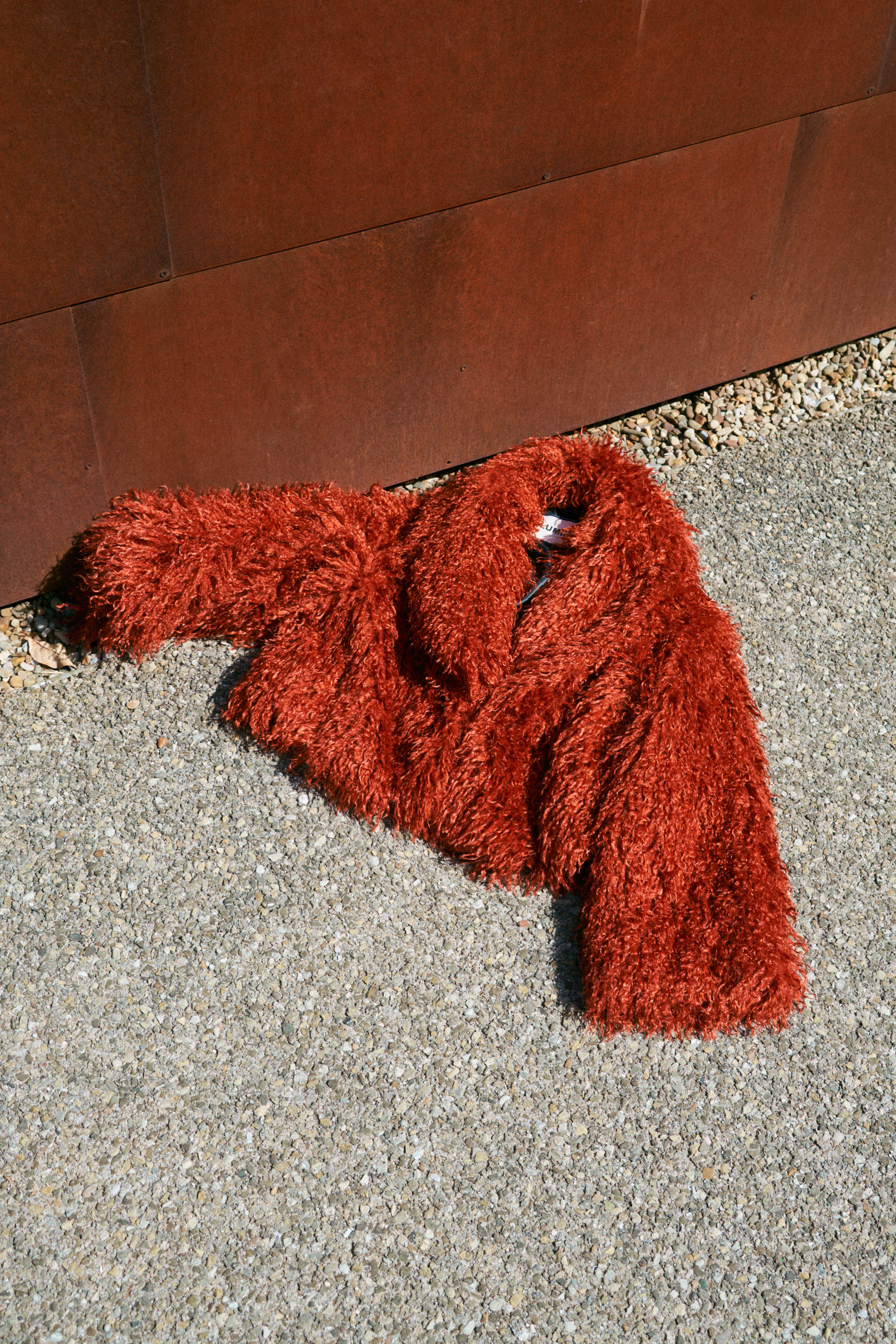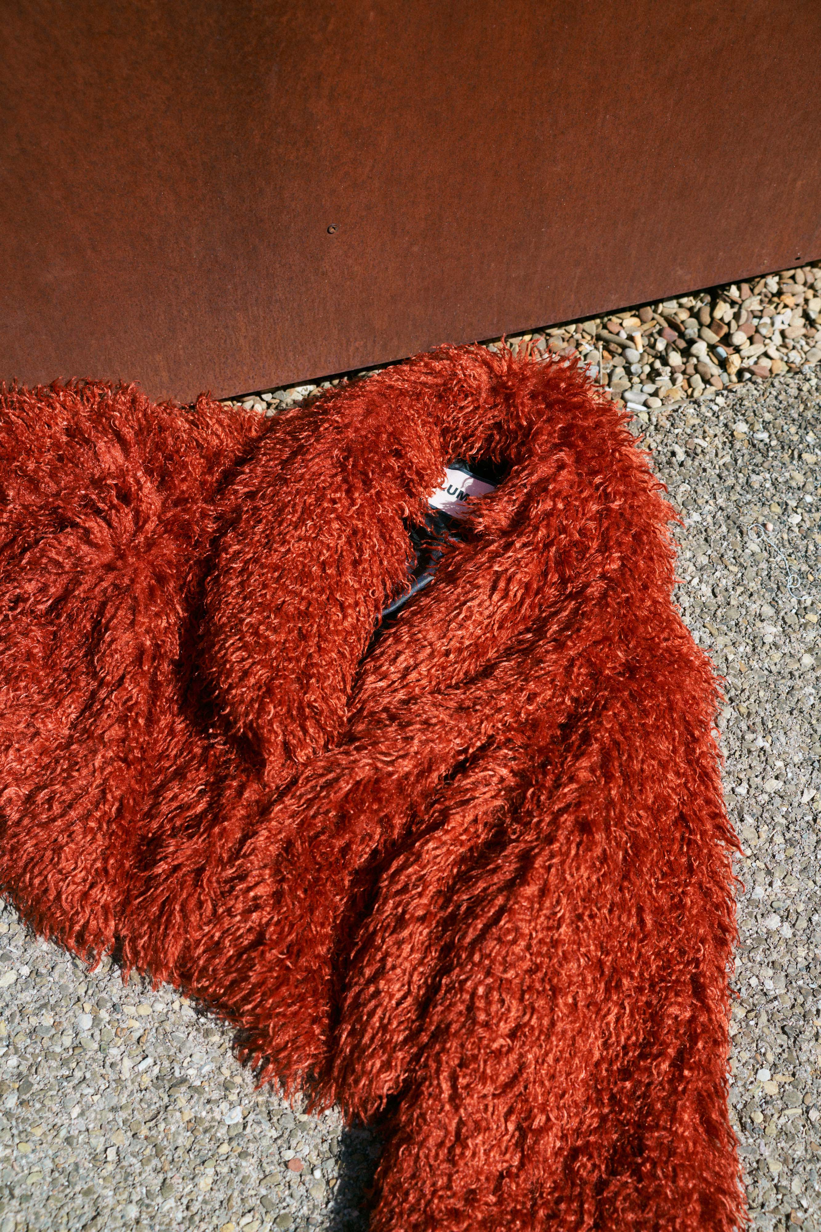 Long coat made of synthetic fur.