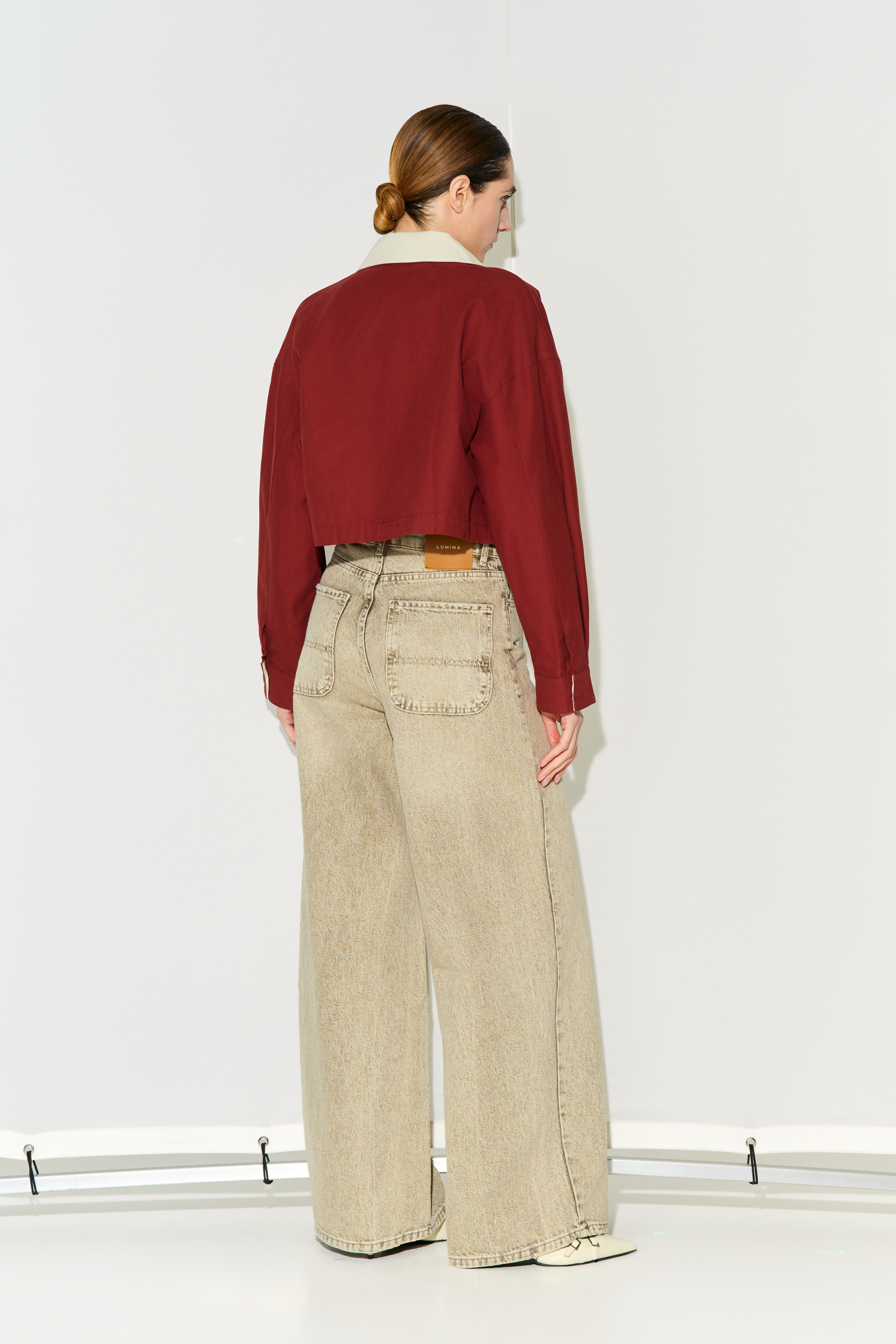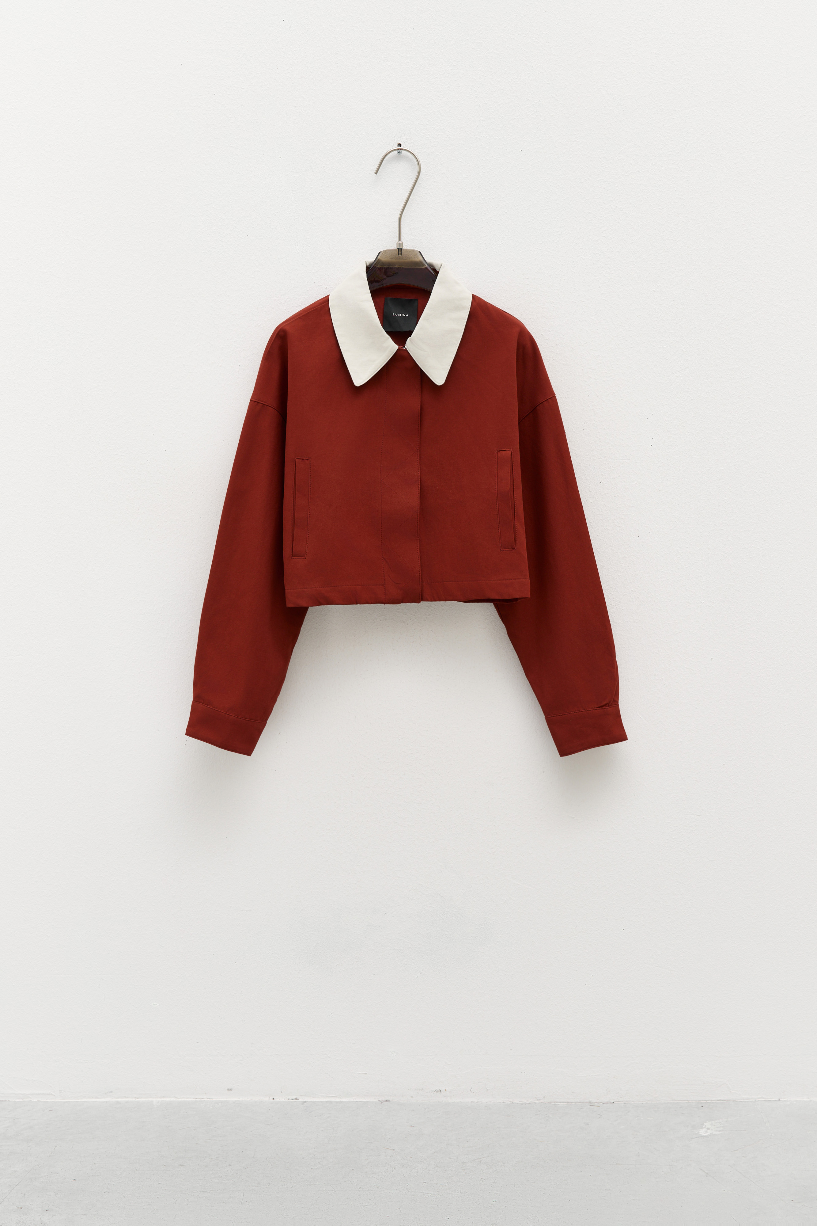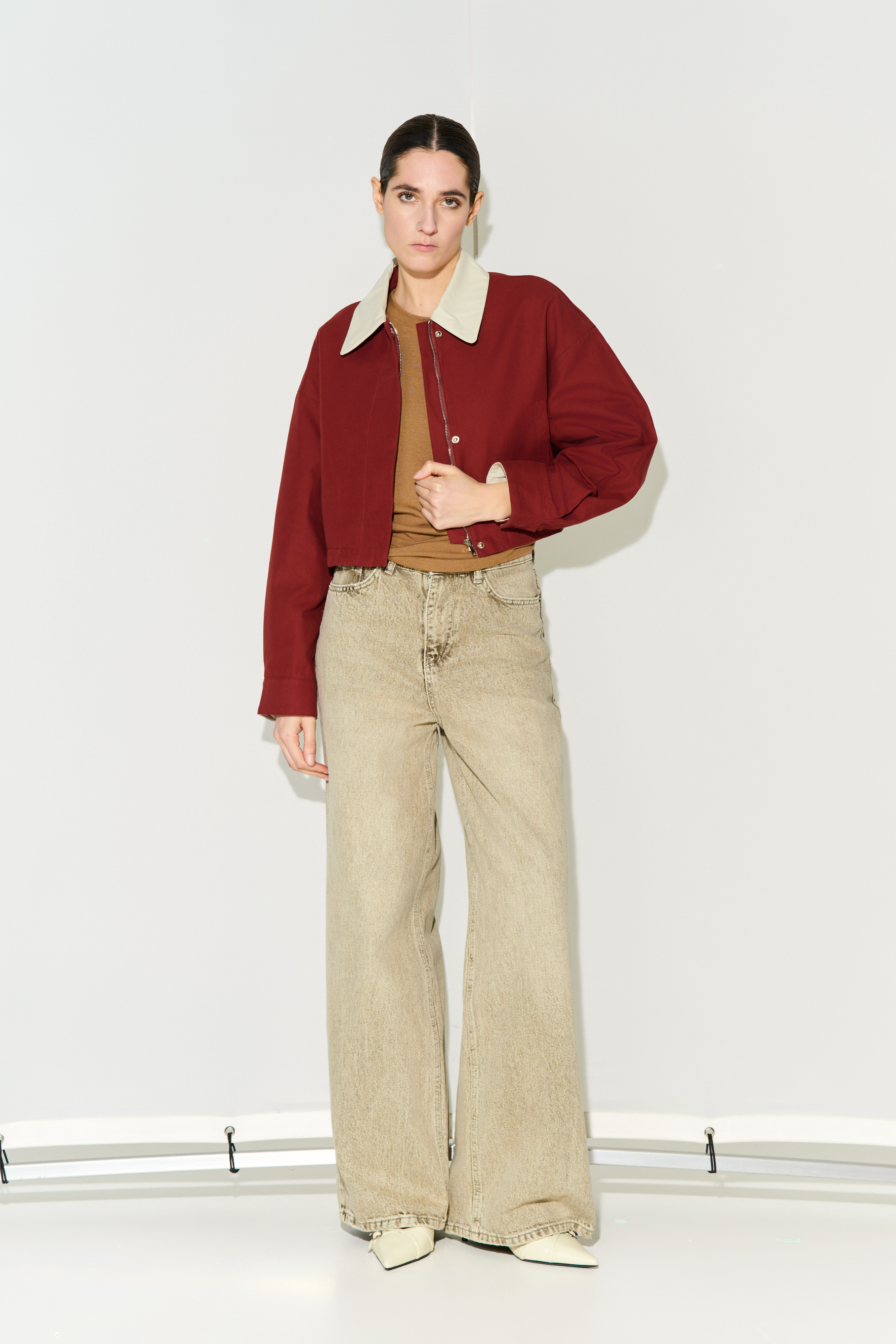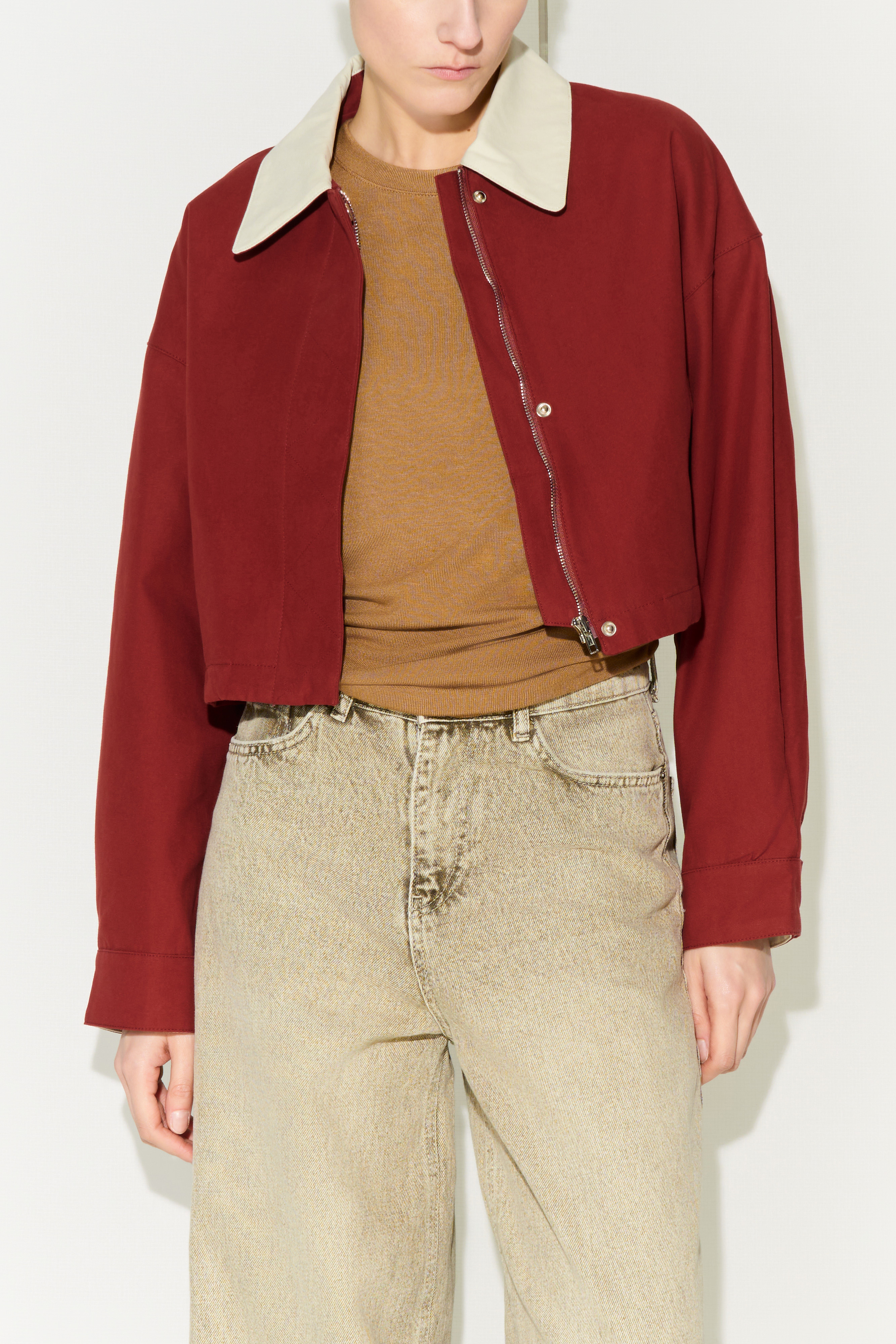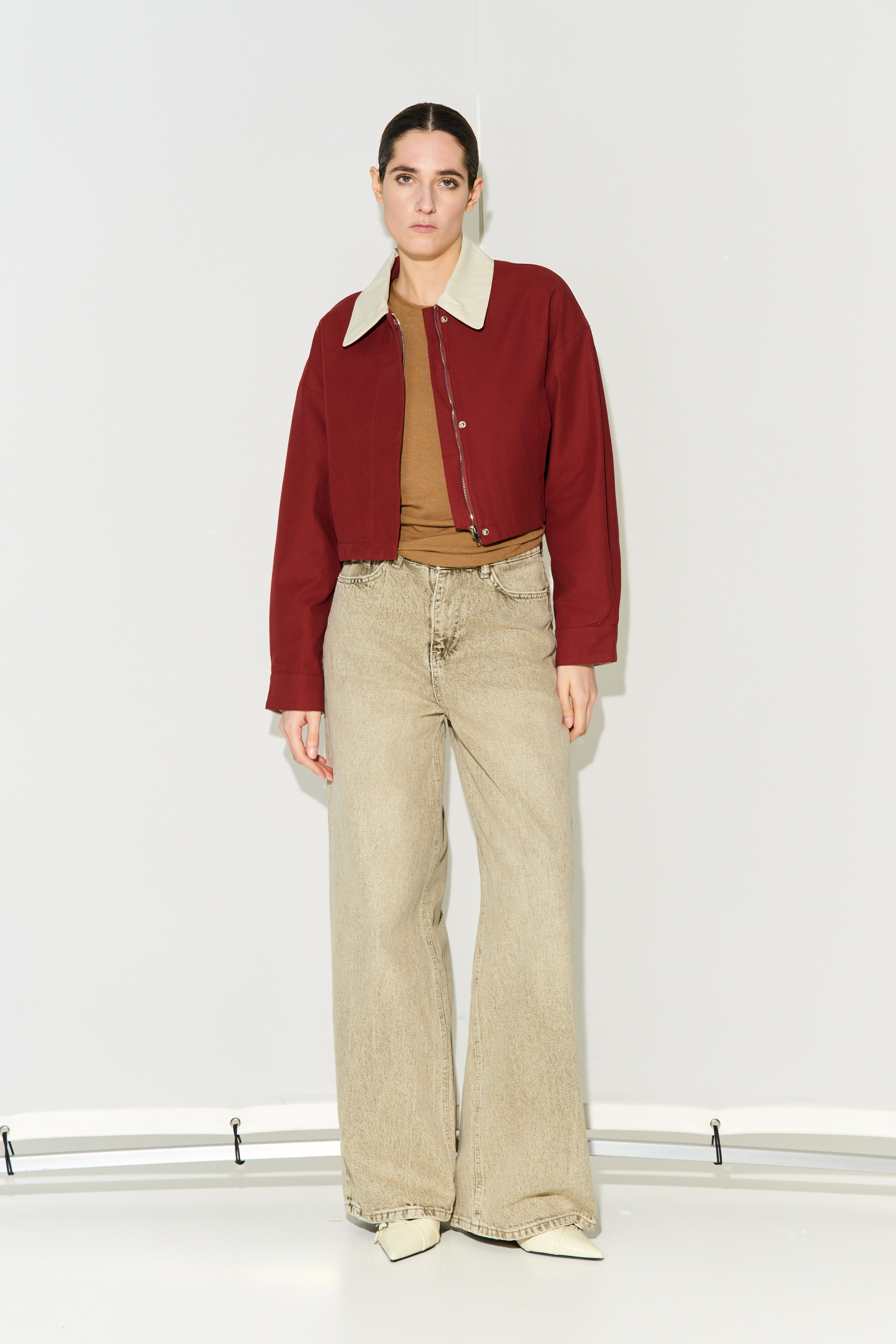 Short jacket with lapel collar.