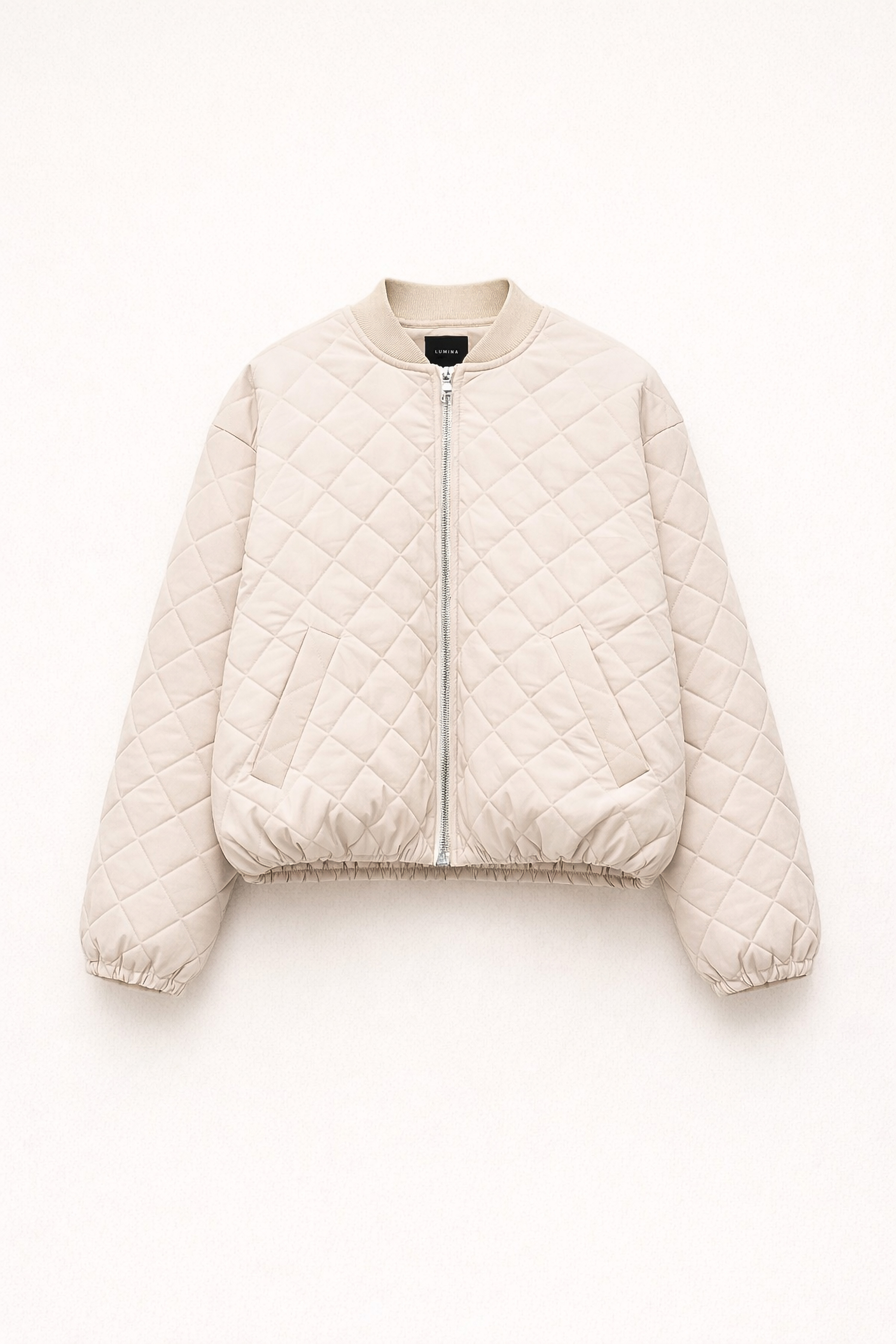 Long-sleeved quilted jacket.