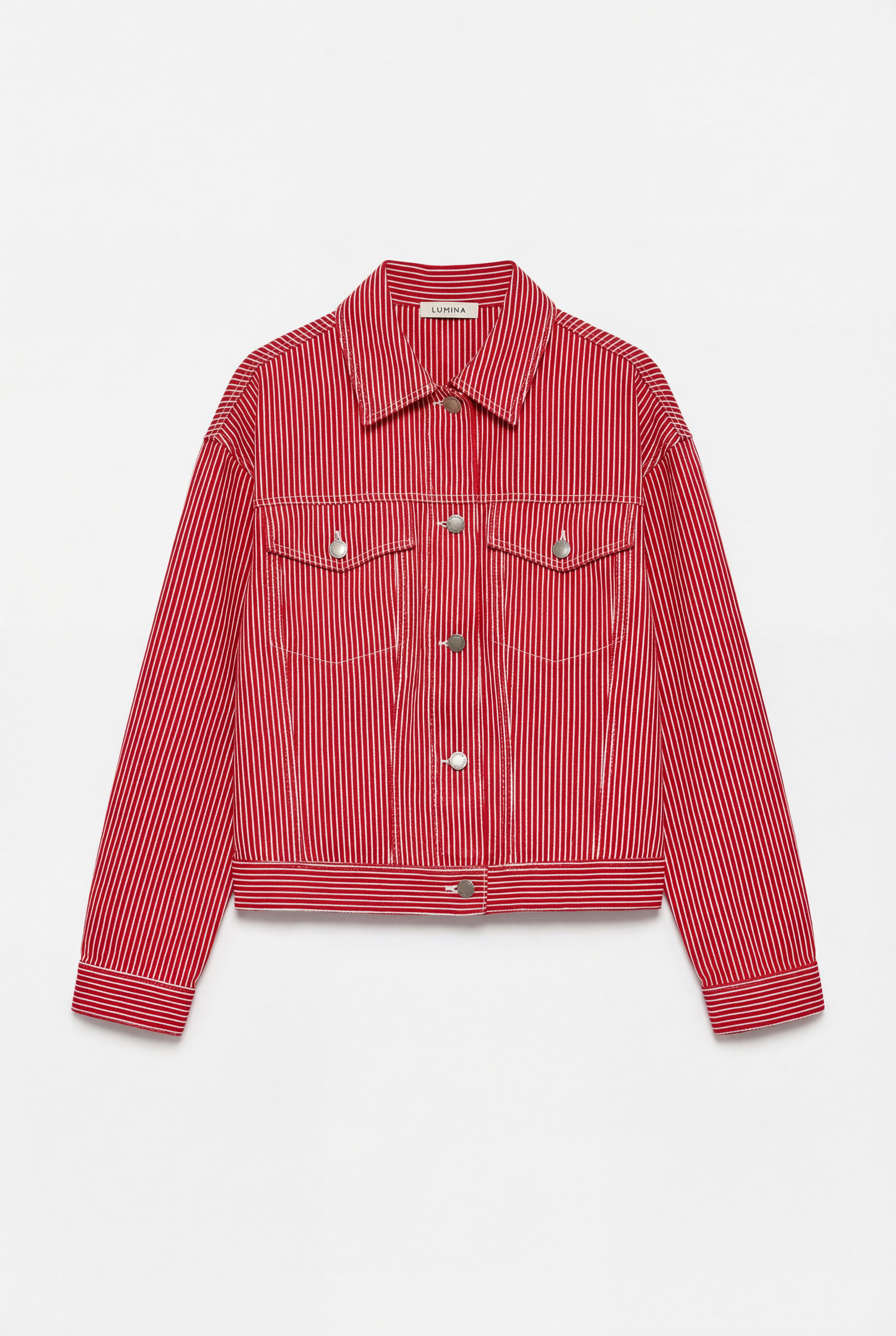 Jacket made of 100% cotton striped fabric.
