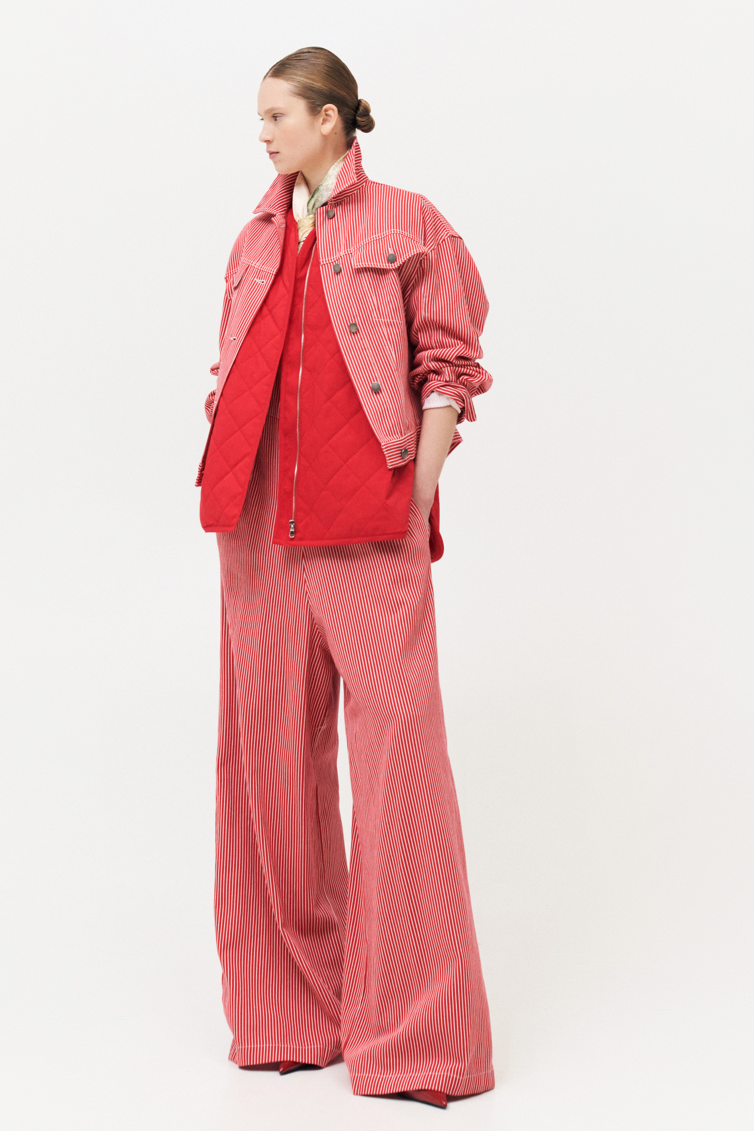 Long-sleeved quilted jacket.