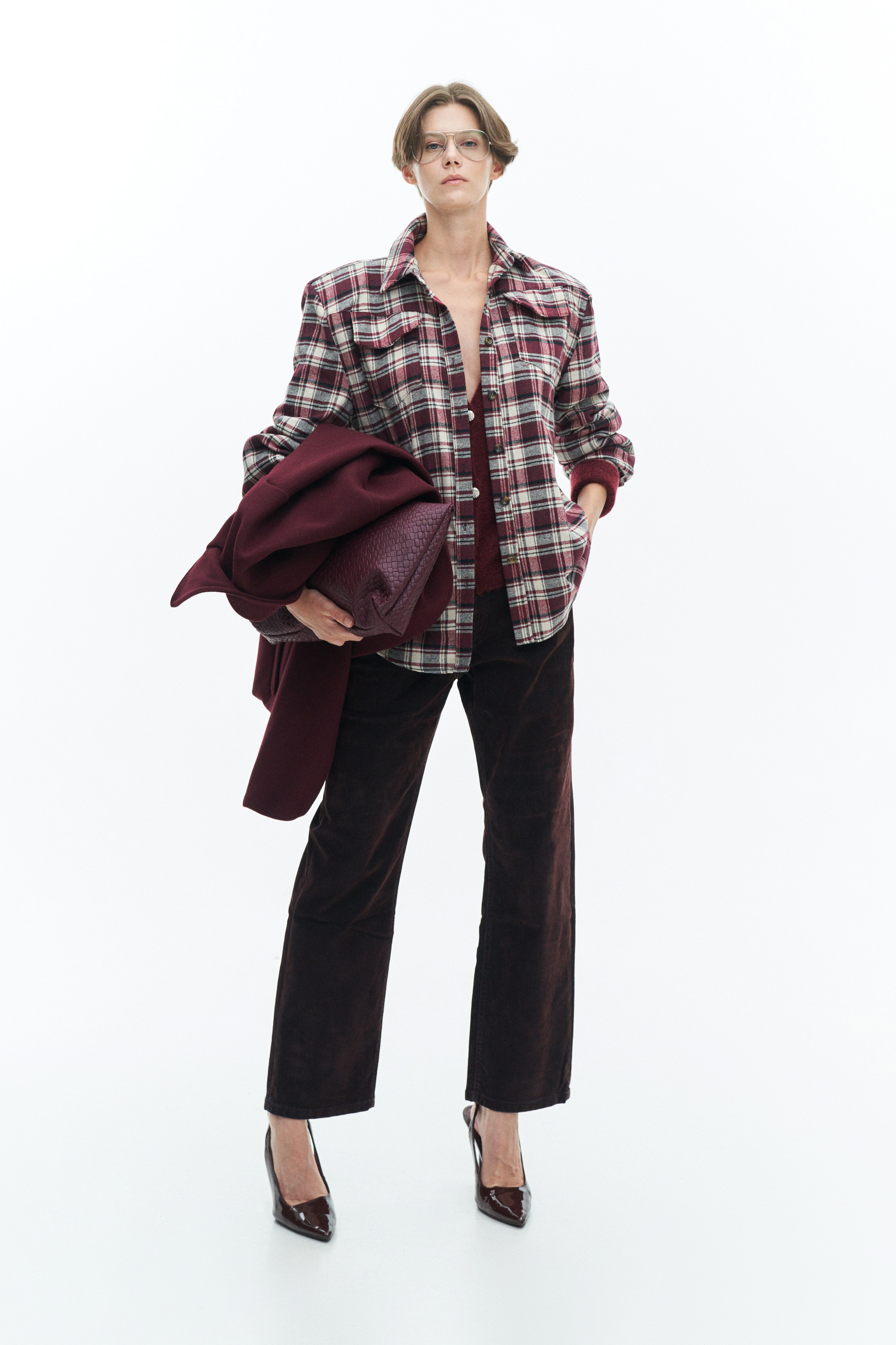 It features chest pockets.
