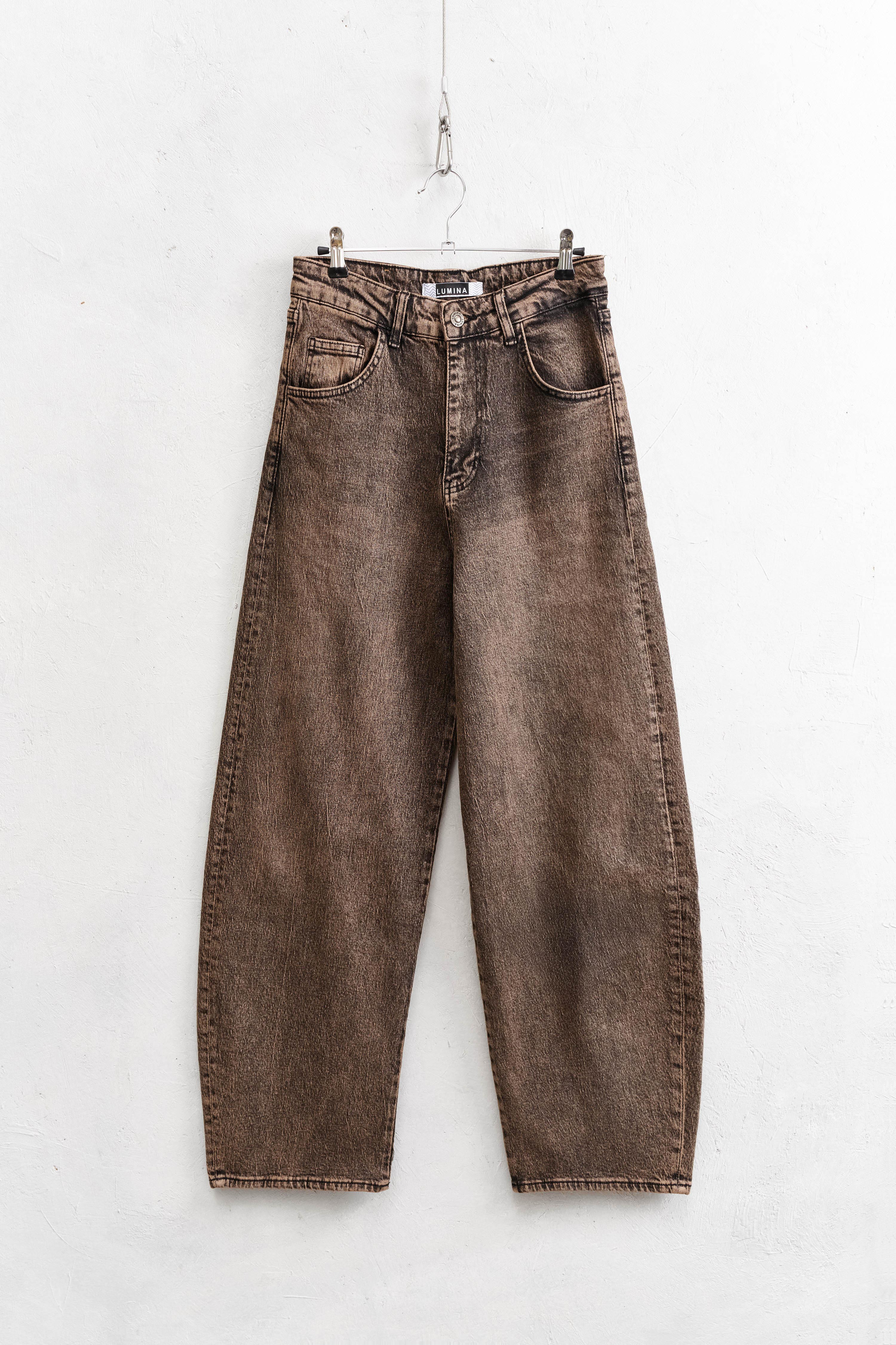 Cotton blend balloon jeans.