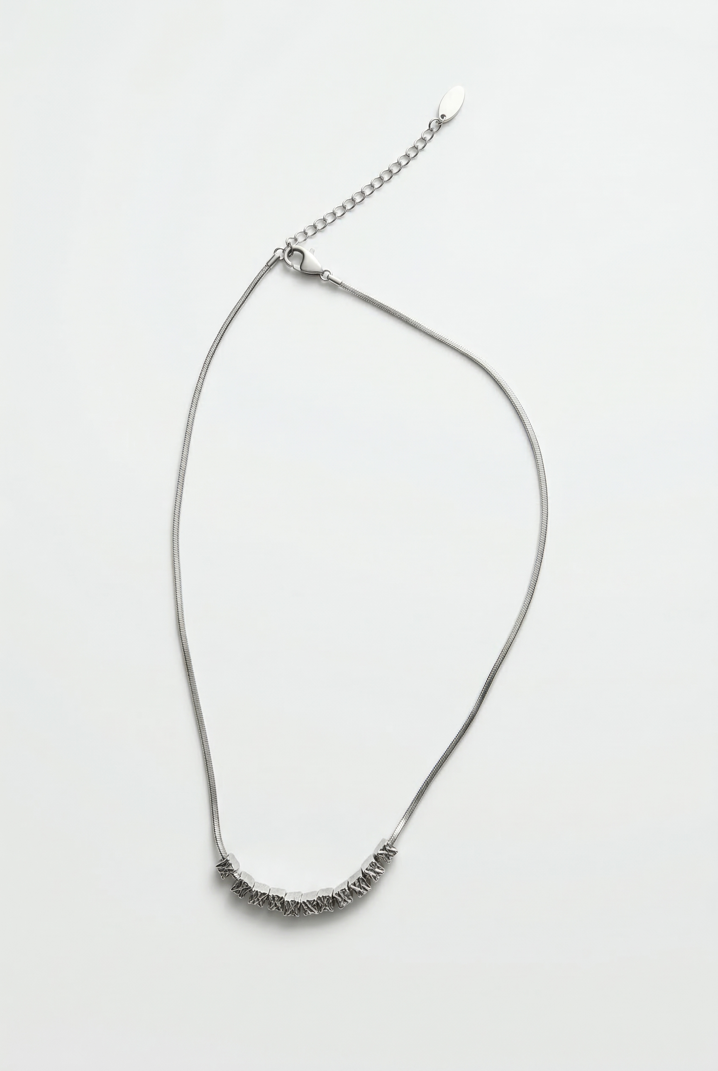 Jewel belt with a structure composed of leaf-shaped metal elements.