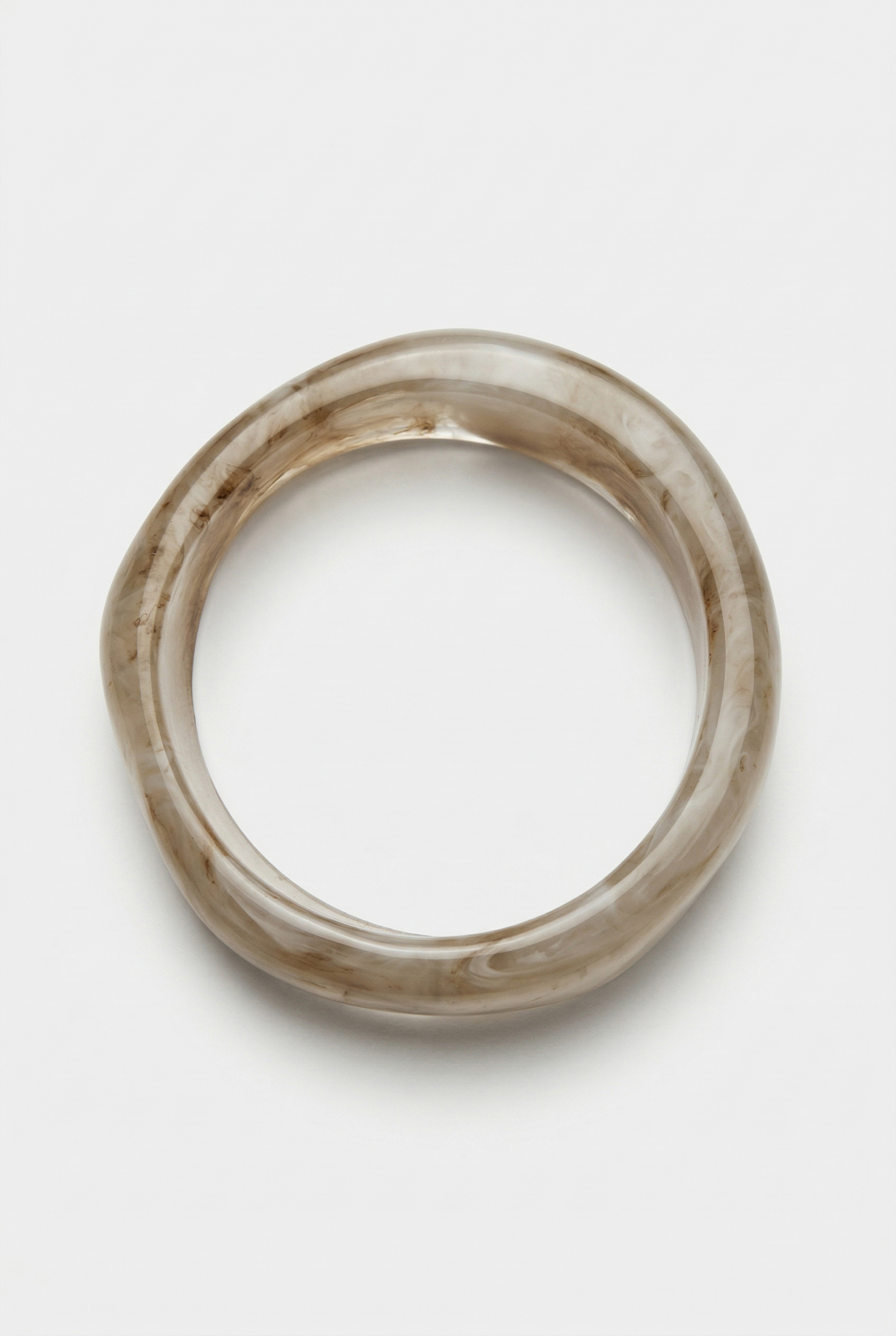 Rigid resin bracelet with a wide structure and rounded edges.