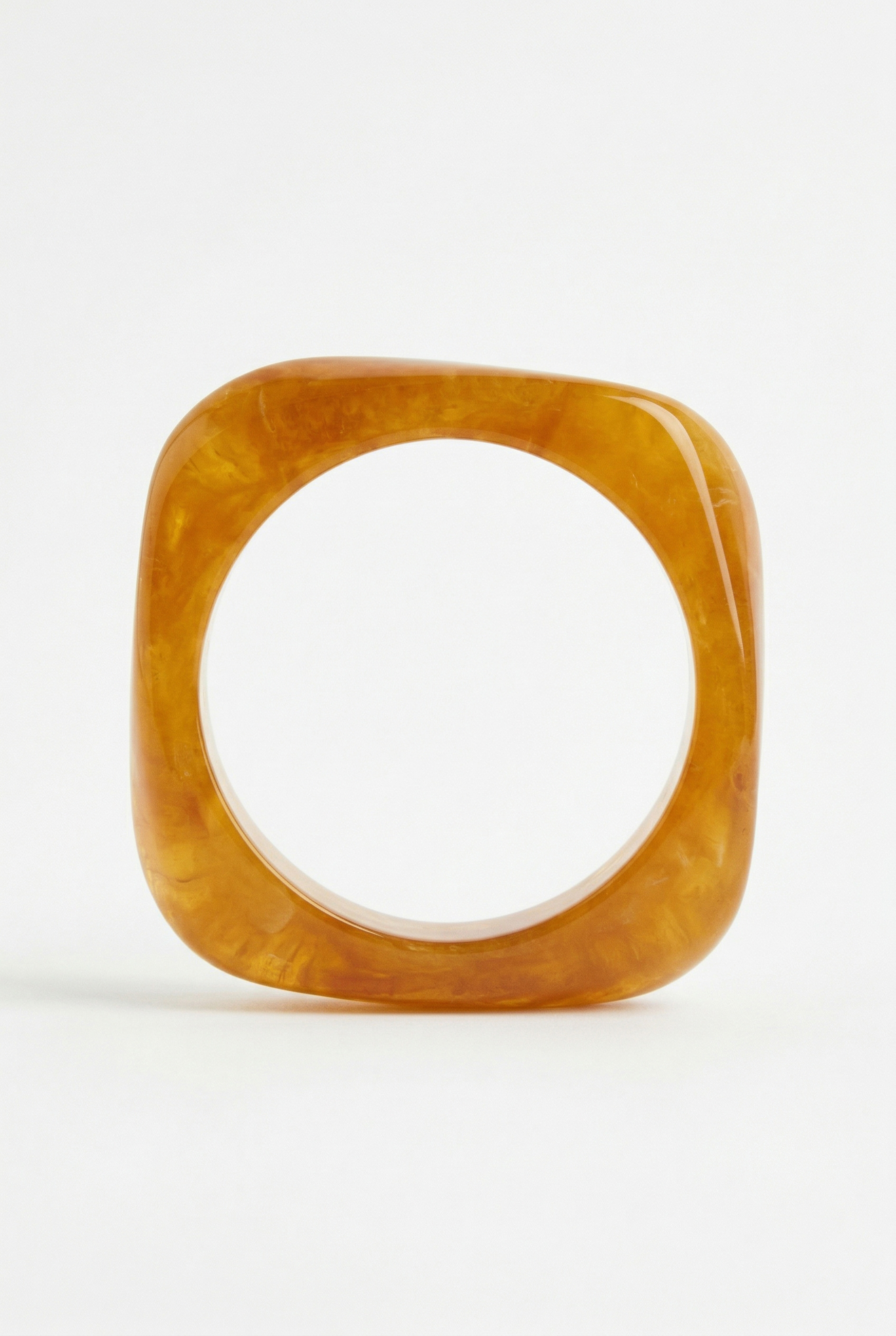 Wide band rigid bracelet with asymmetrical profile and overlapping volumes.