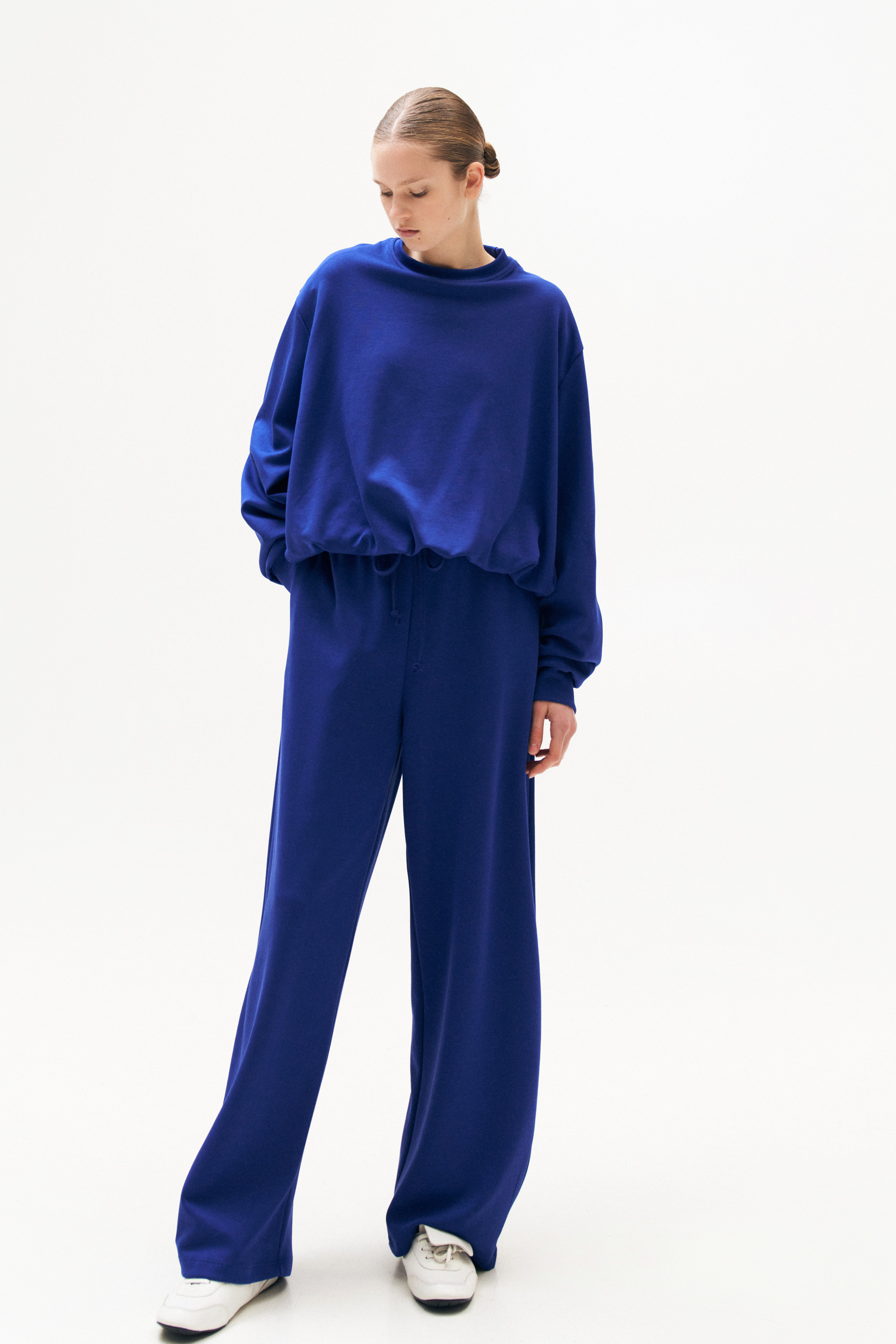 Wide leg with elasticated bottom.