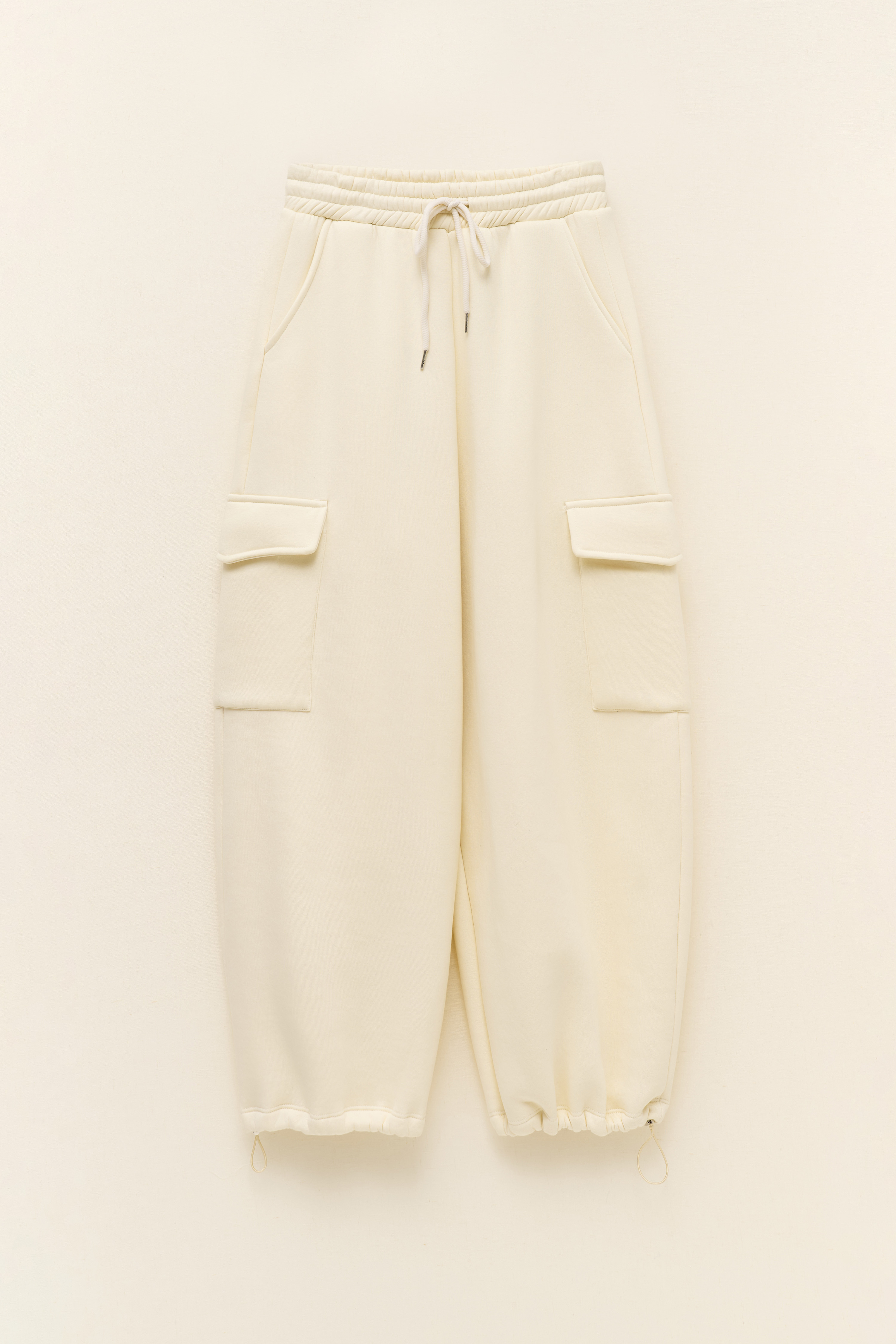Wide leg with elasticated bottom.