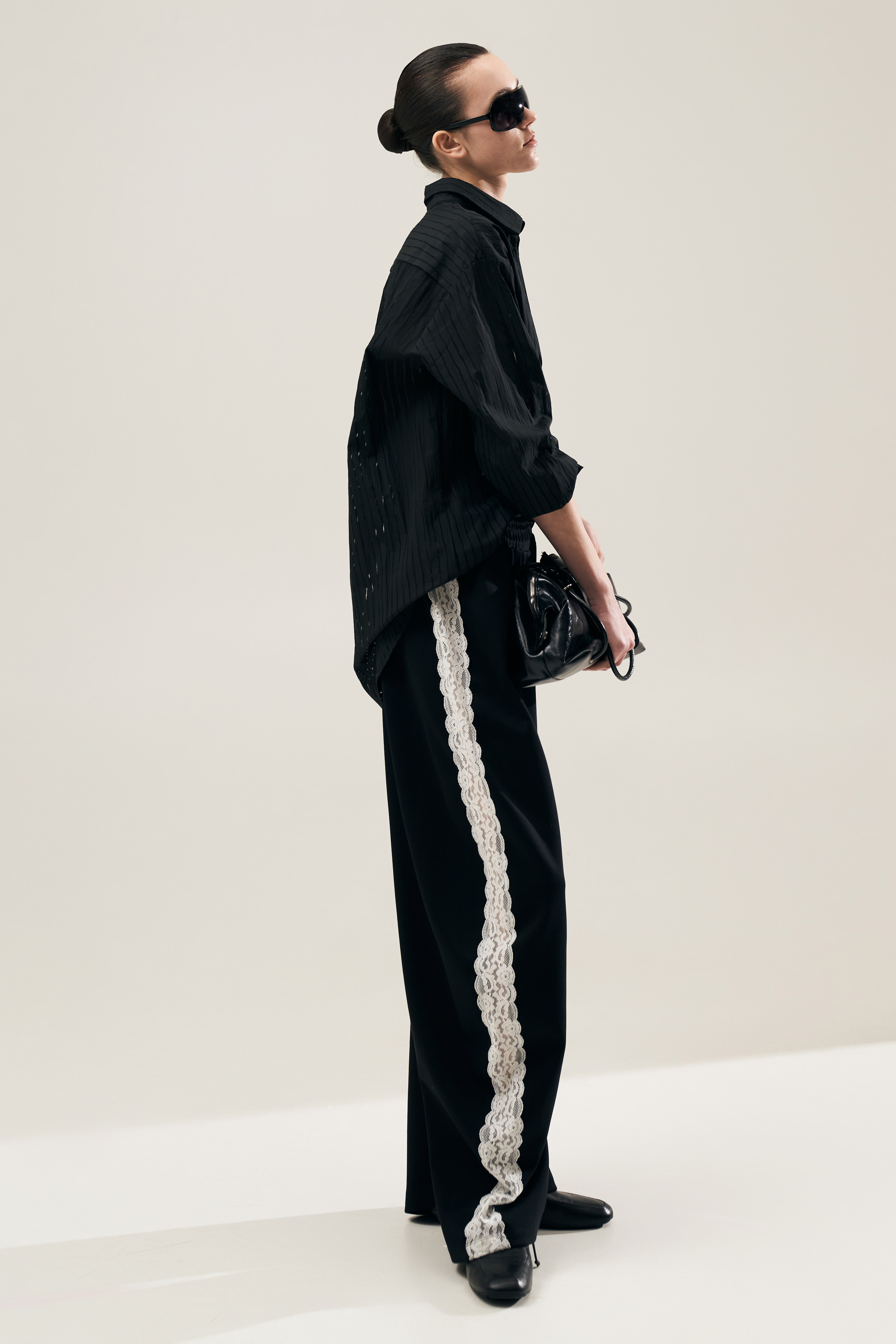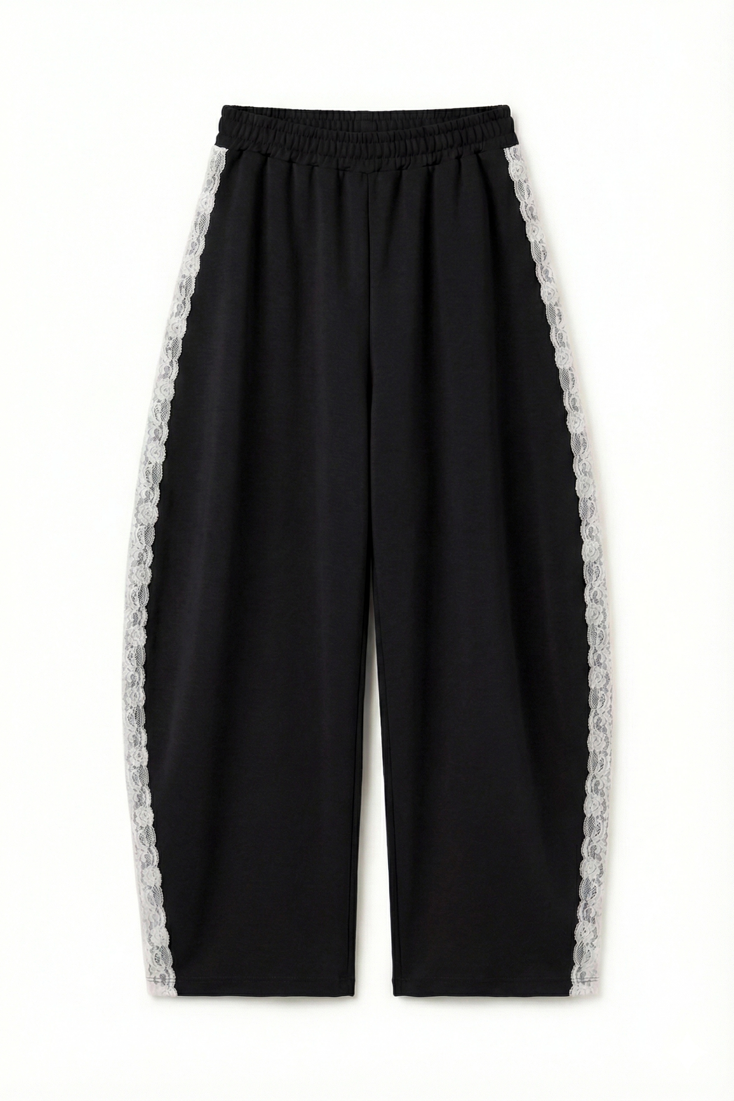 Long jogger trousers with lace side inserts.