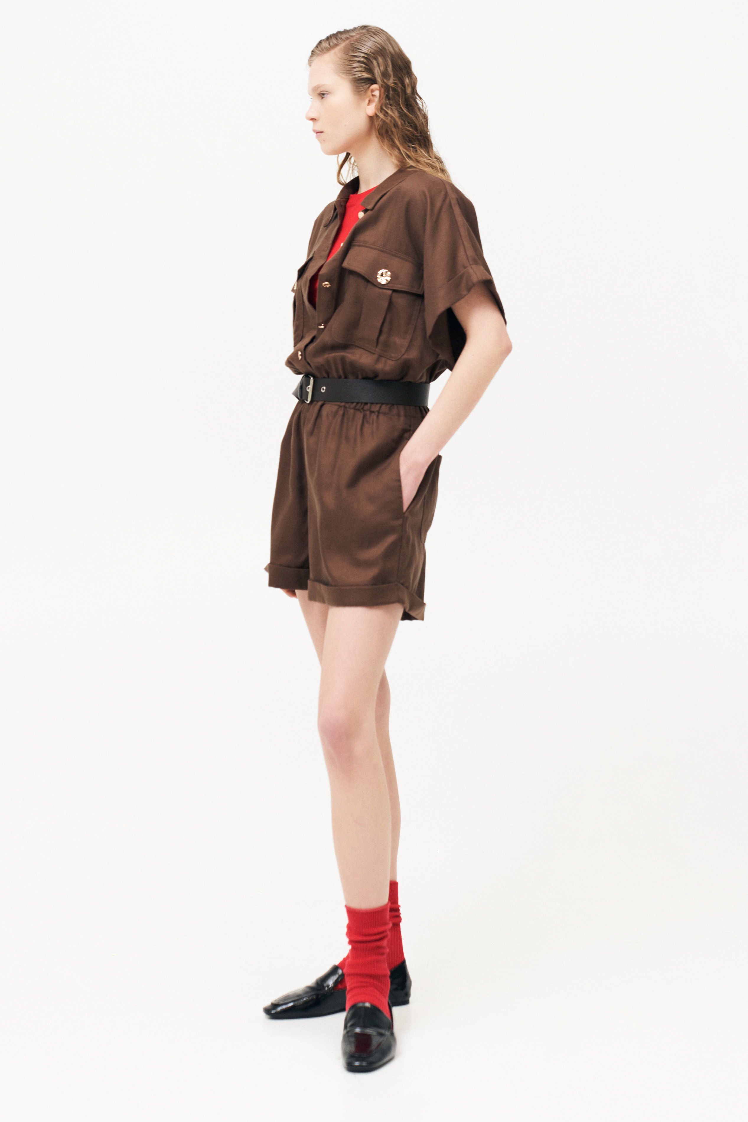Short sleeves. Elasticated waist.