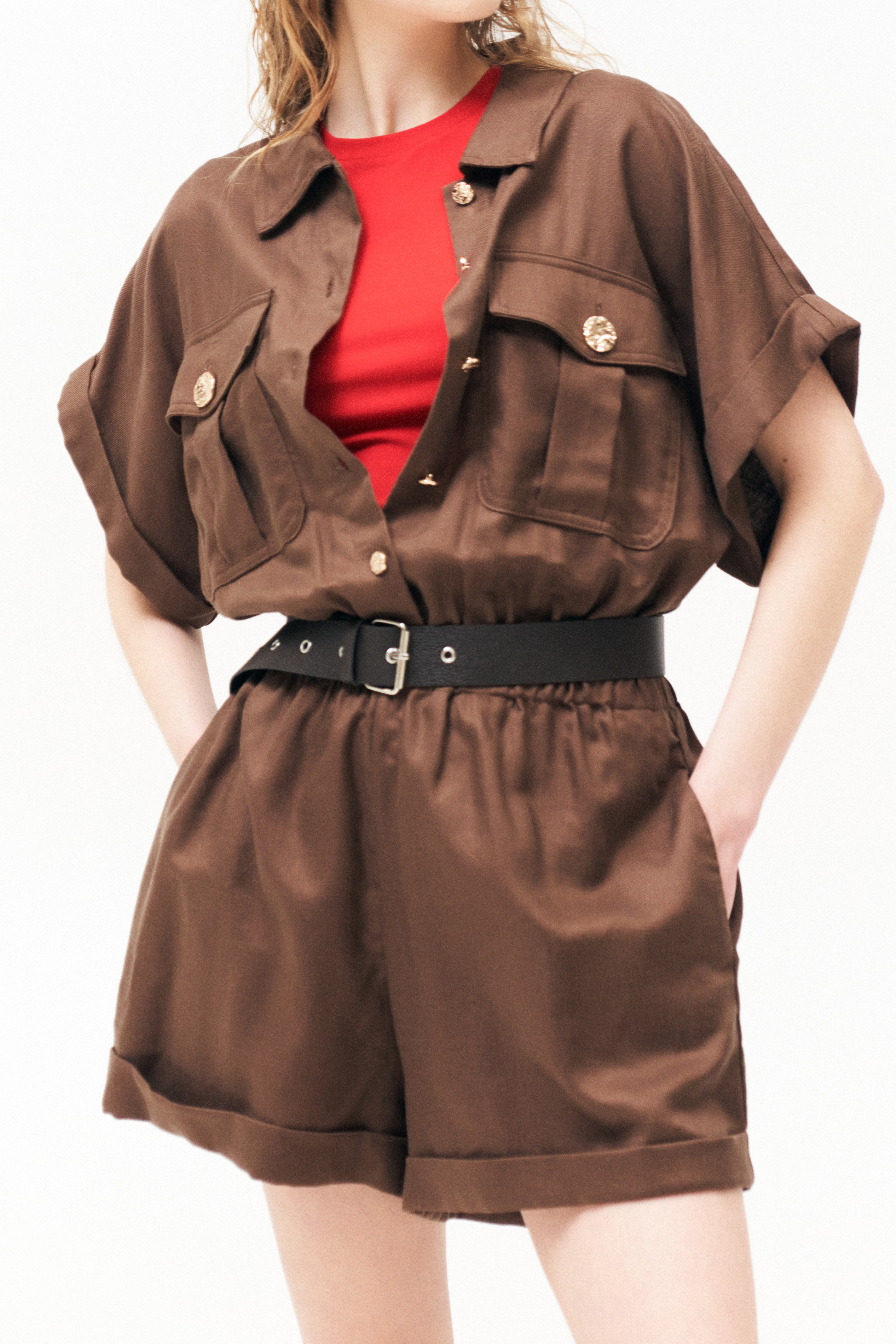 Shirt collar with classic lapels.
