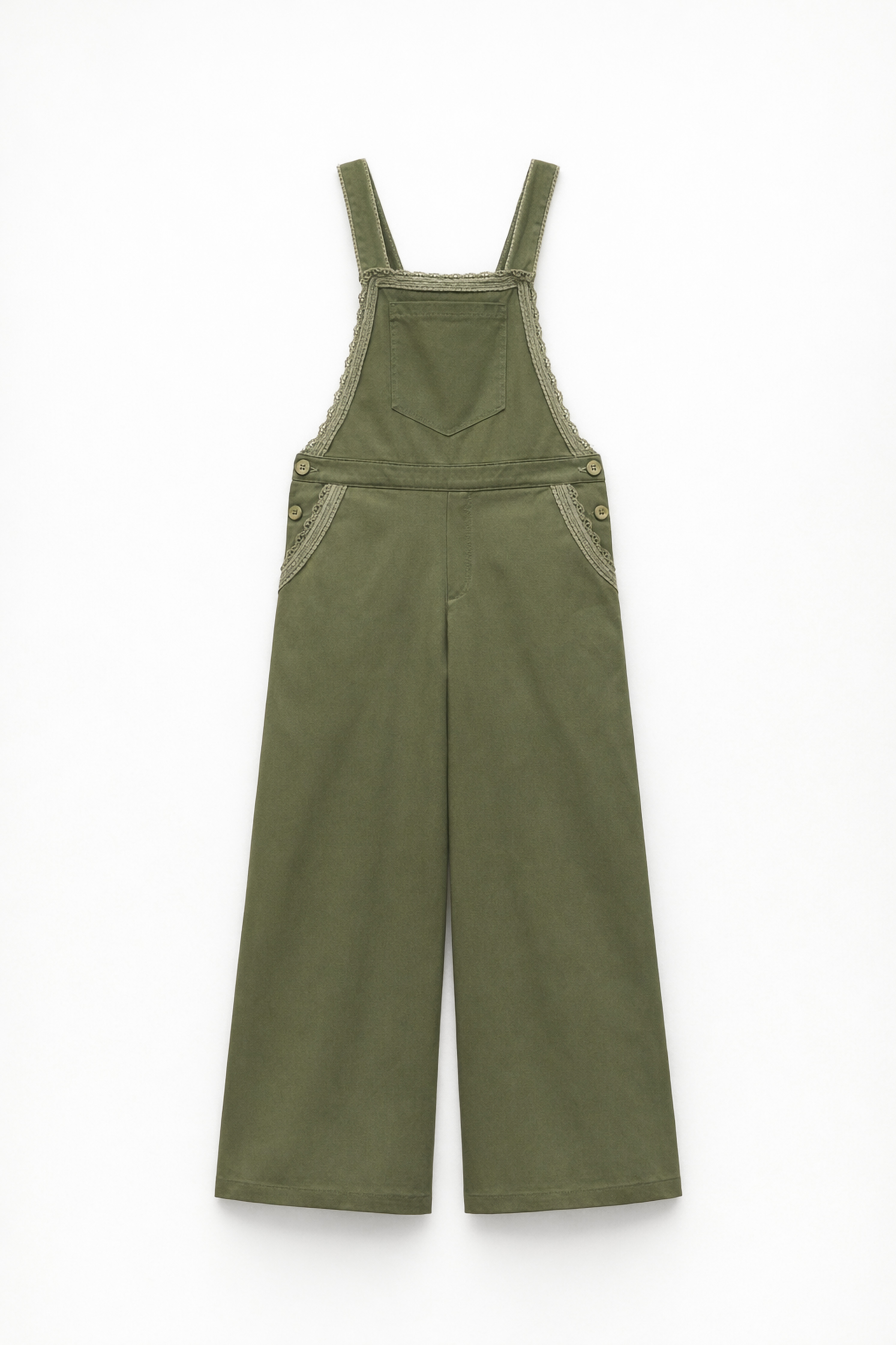Dungarees with wide straps and lace insert.