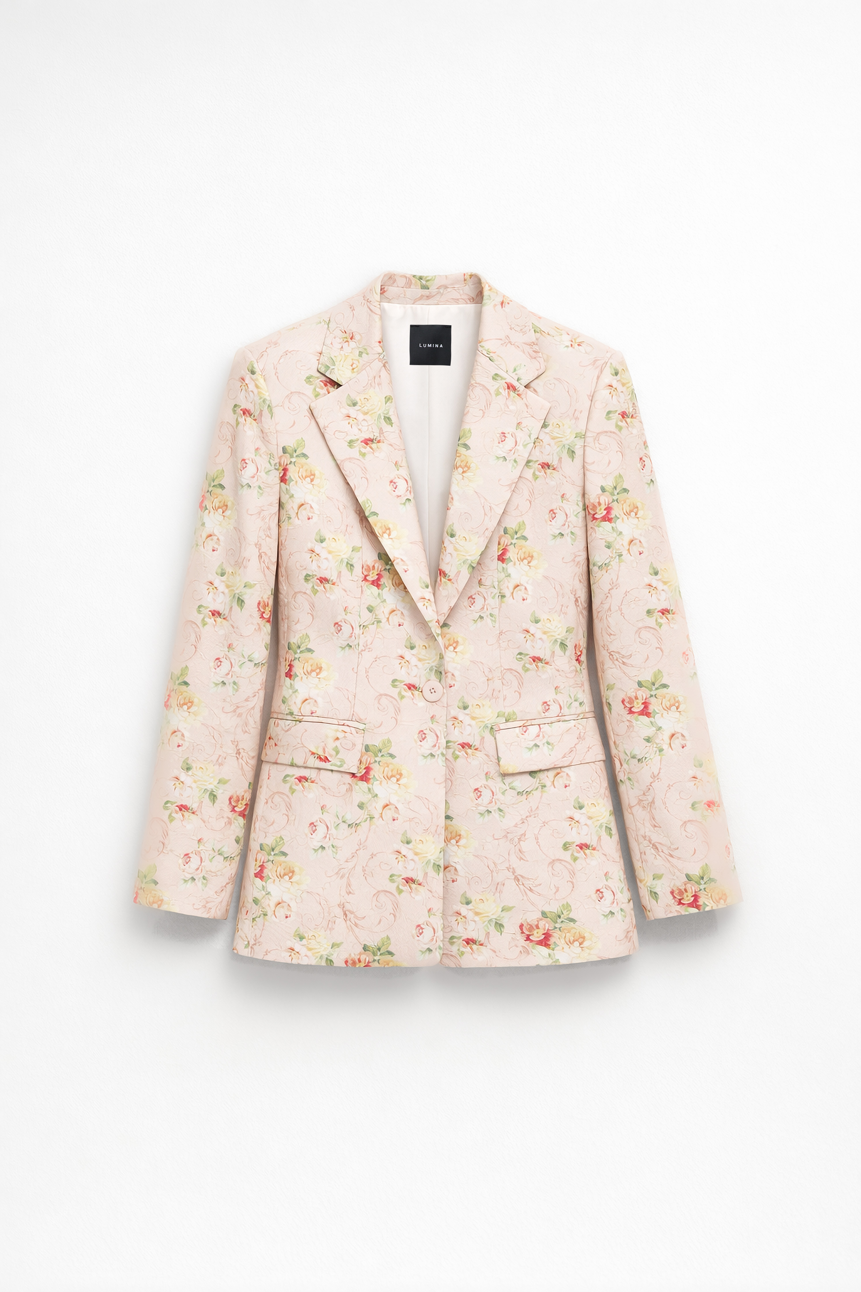 Blazer with floral print and embroidery.