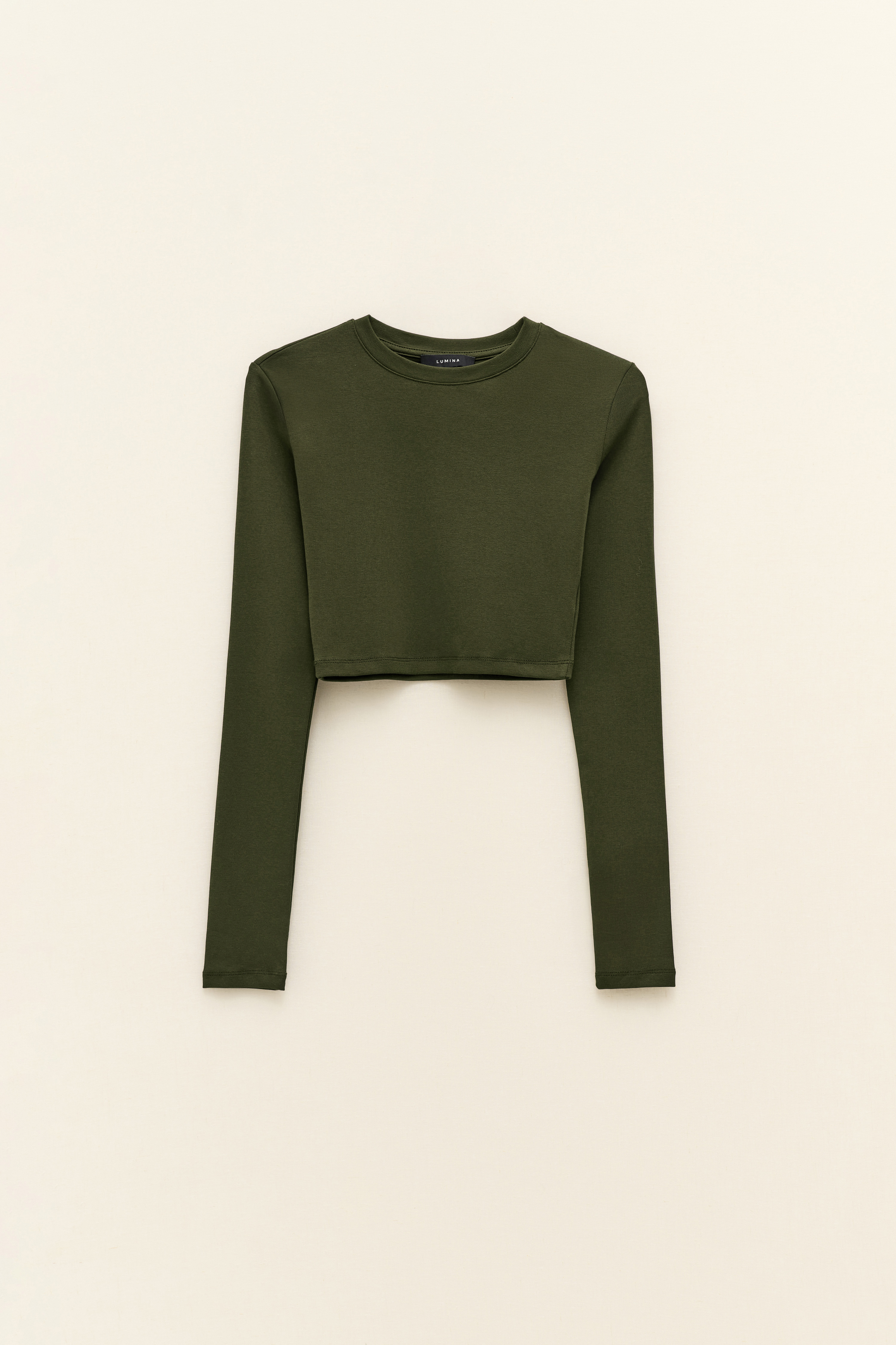 Crew neck, long sleeve T-shirt.