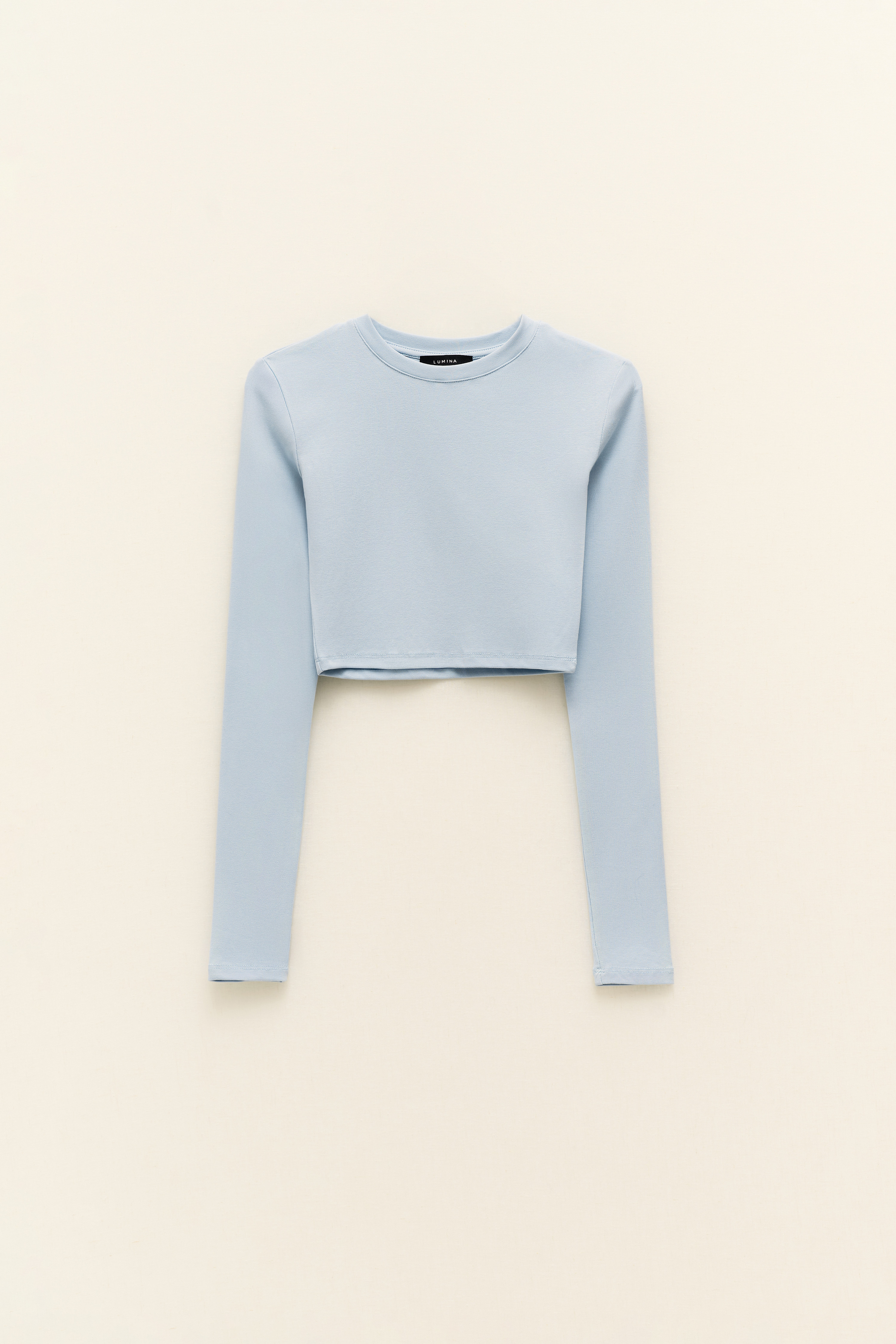 Crew neck, long sleeve T-shirt.
