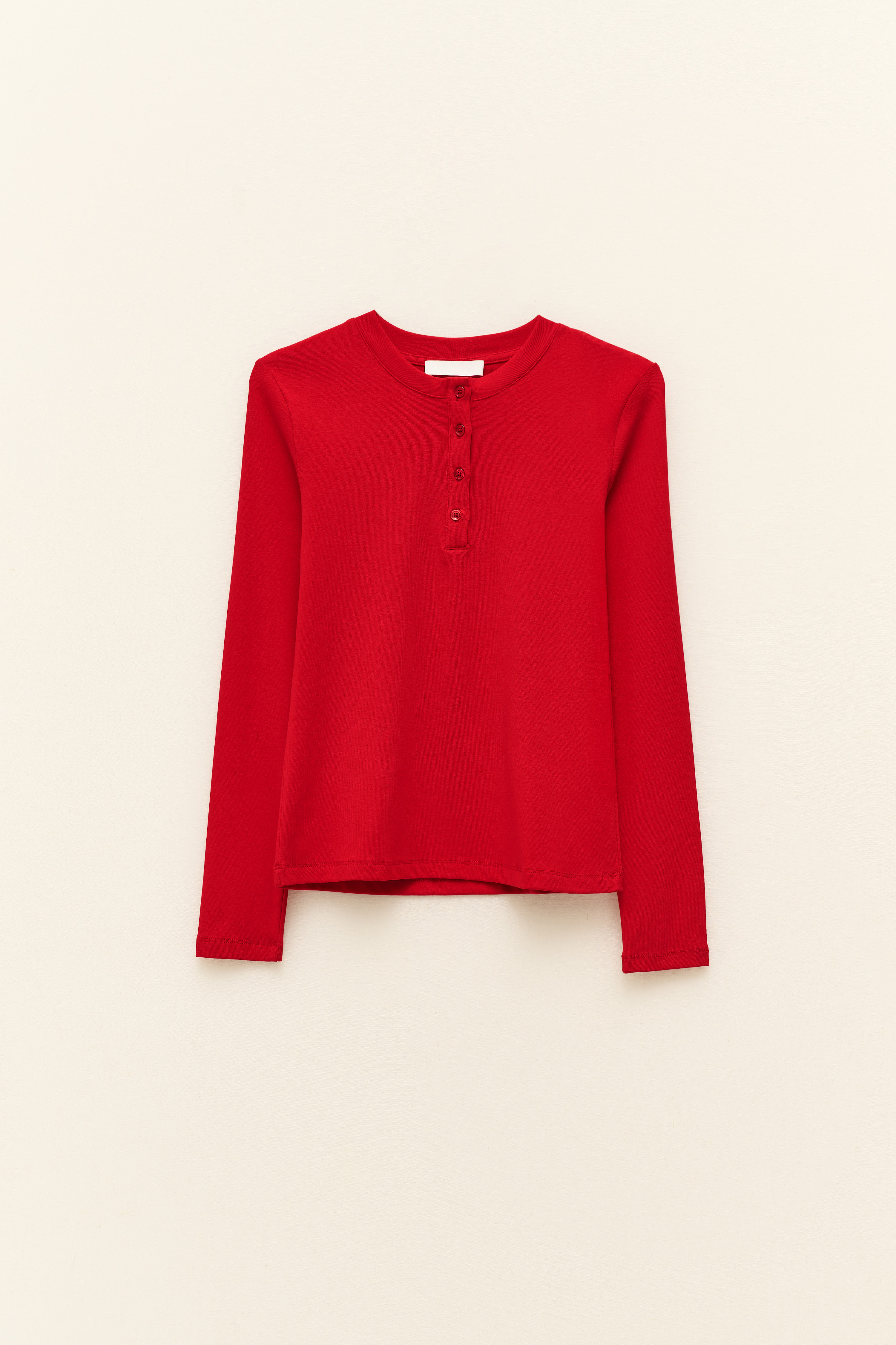 Long-sleeved shirt in stretch ribbed cotton blend.