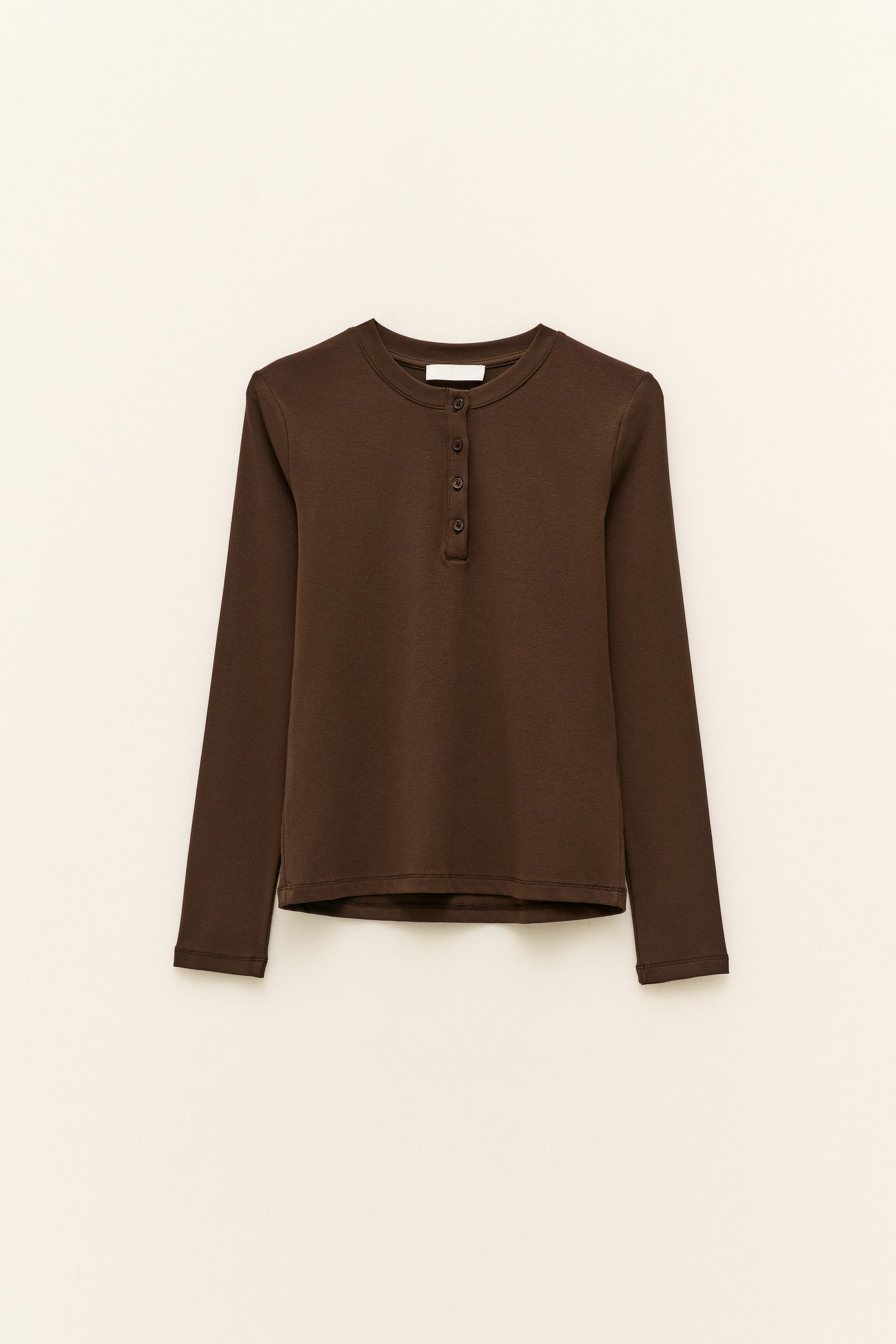 Long-sleeved shirt in stretch ribbed cotton blend.