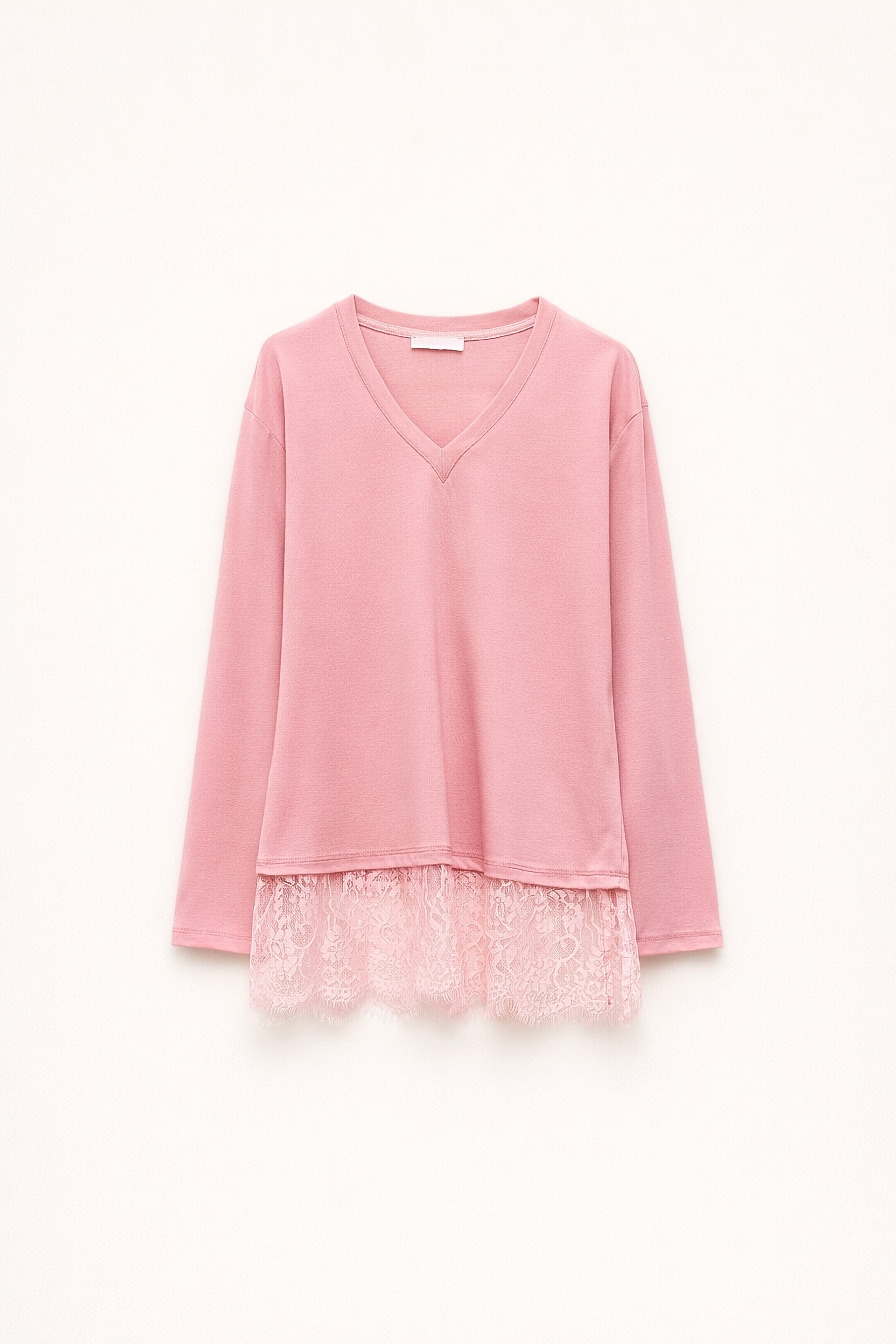 Wide U-neck detail with lace insert.