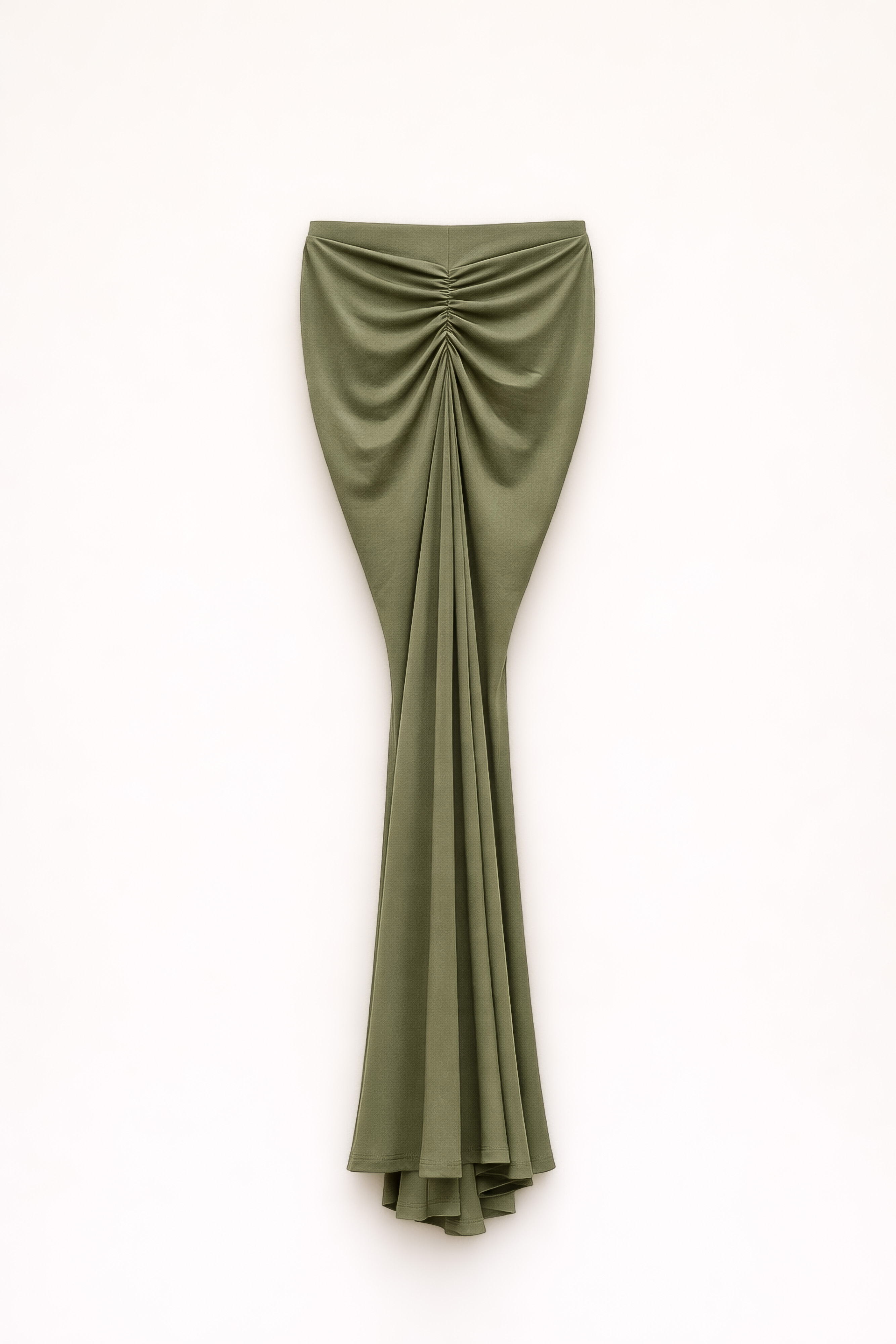 Elasticated waist. Draped detailing. Flared line.
