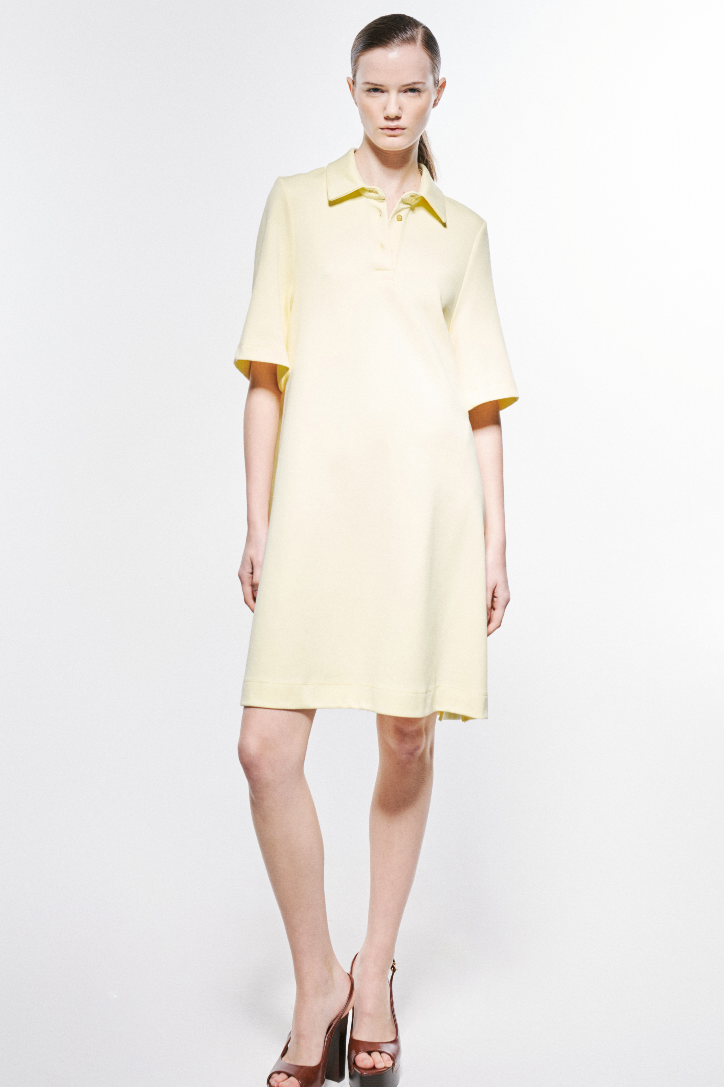 Long dress with wide off-the-shoulder neckline and ruffles.