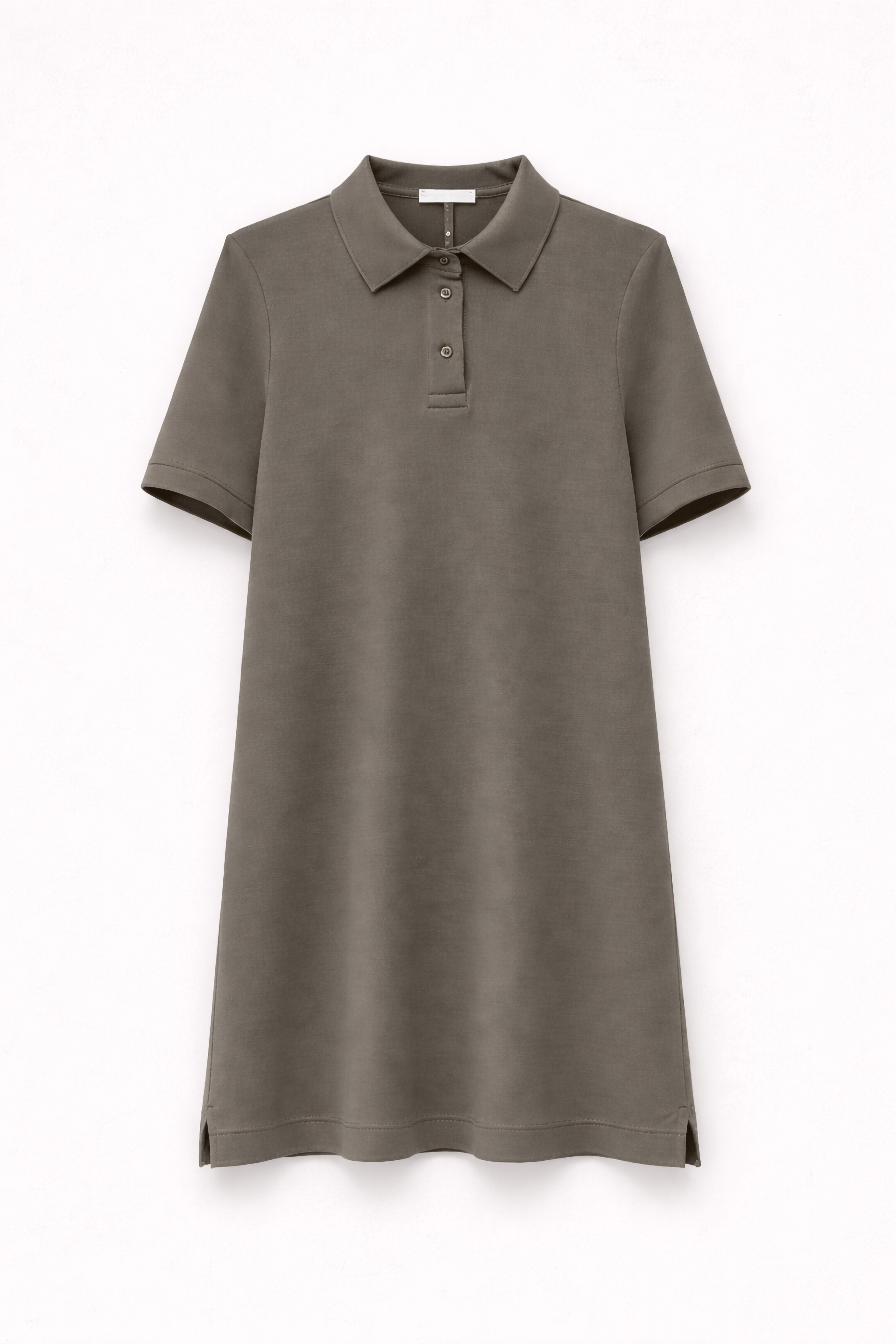 Long dress with wide off-the-shoulder neckline and ruffles.
