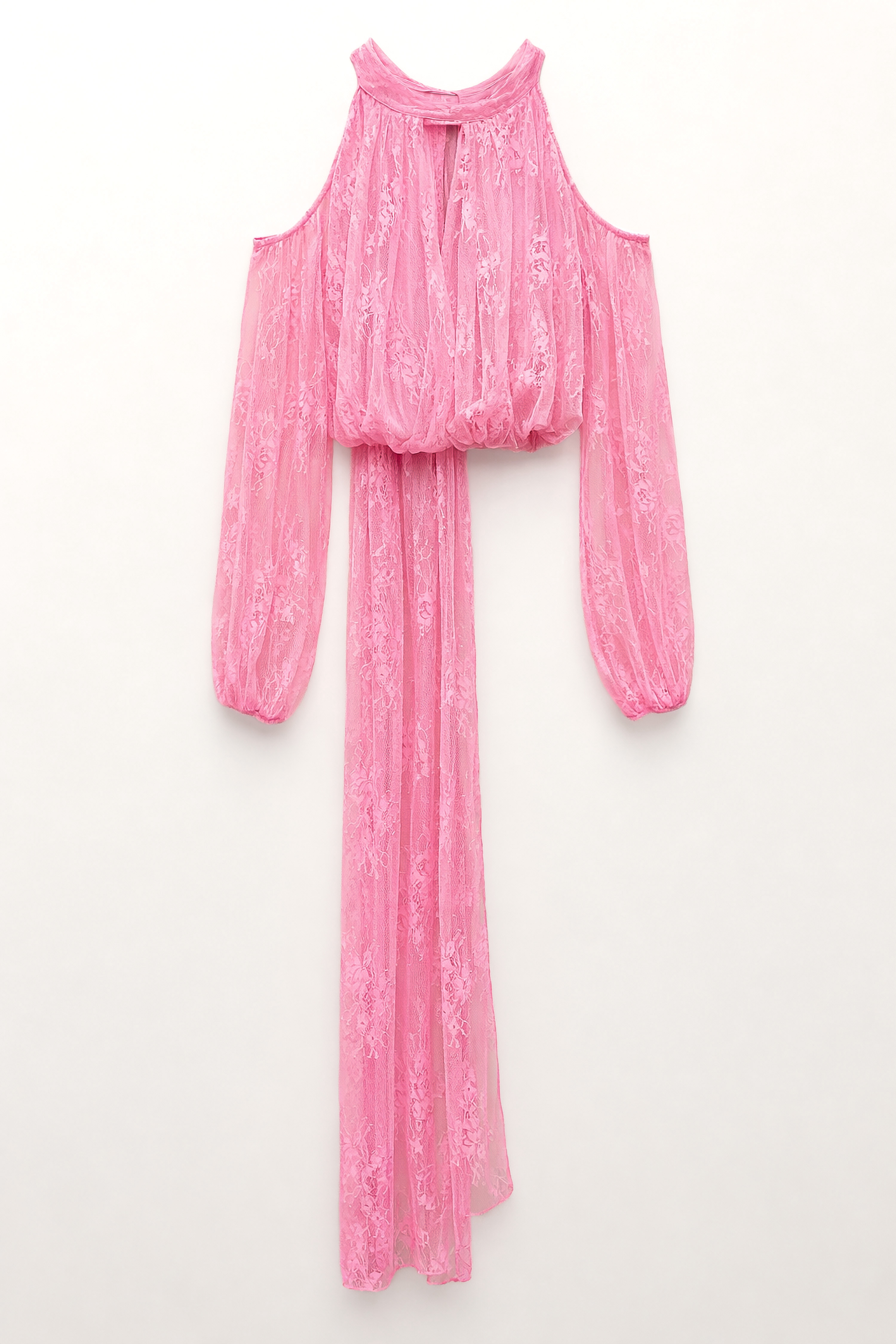 Long, wide sleeves with off-the-shoulder styling.