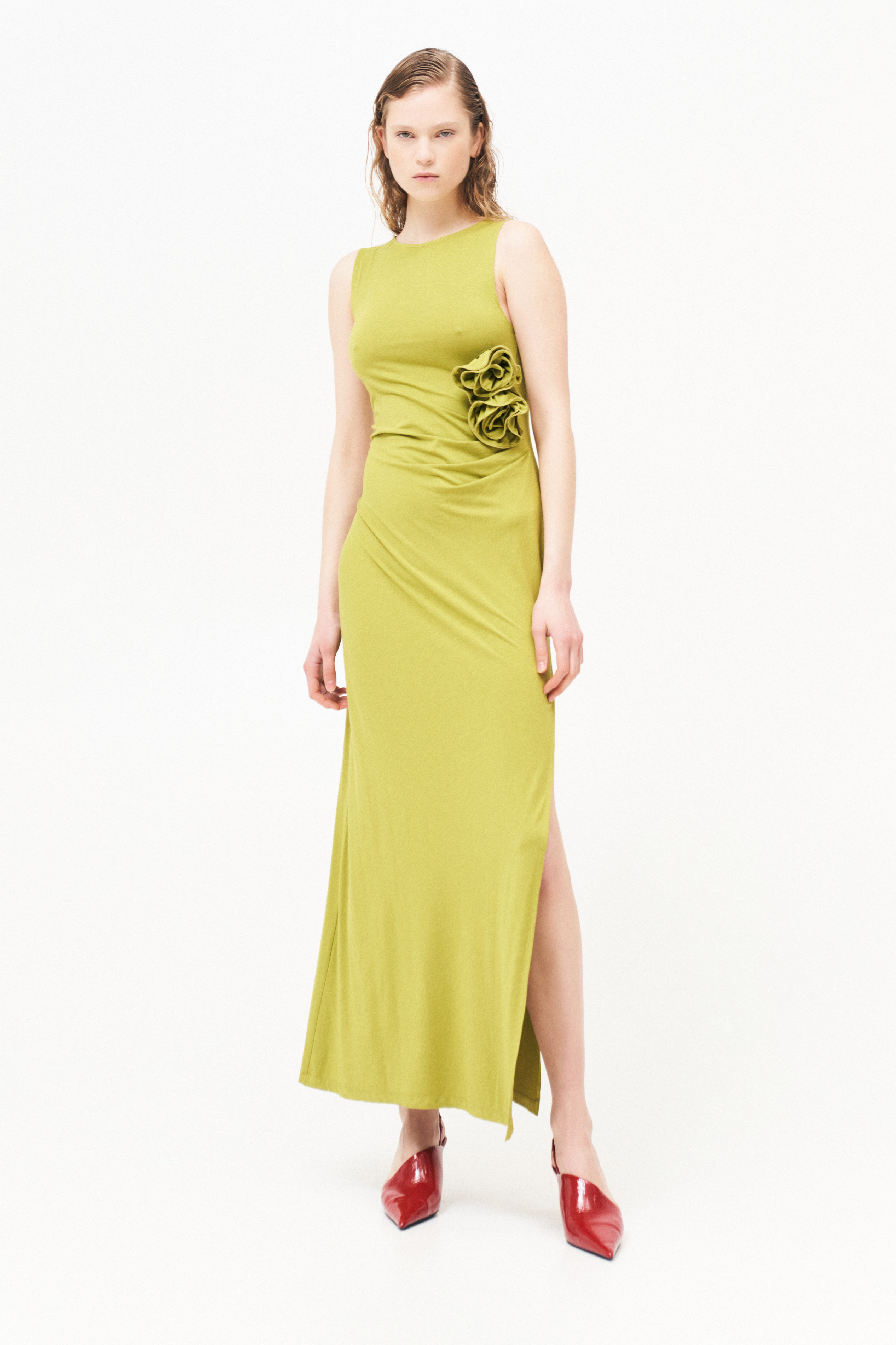 Round neckline. Side slit at the bottom.