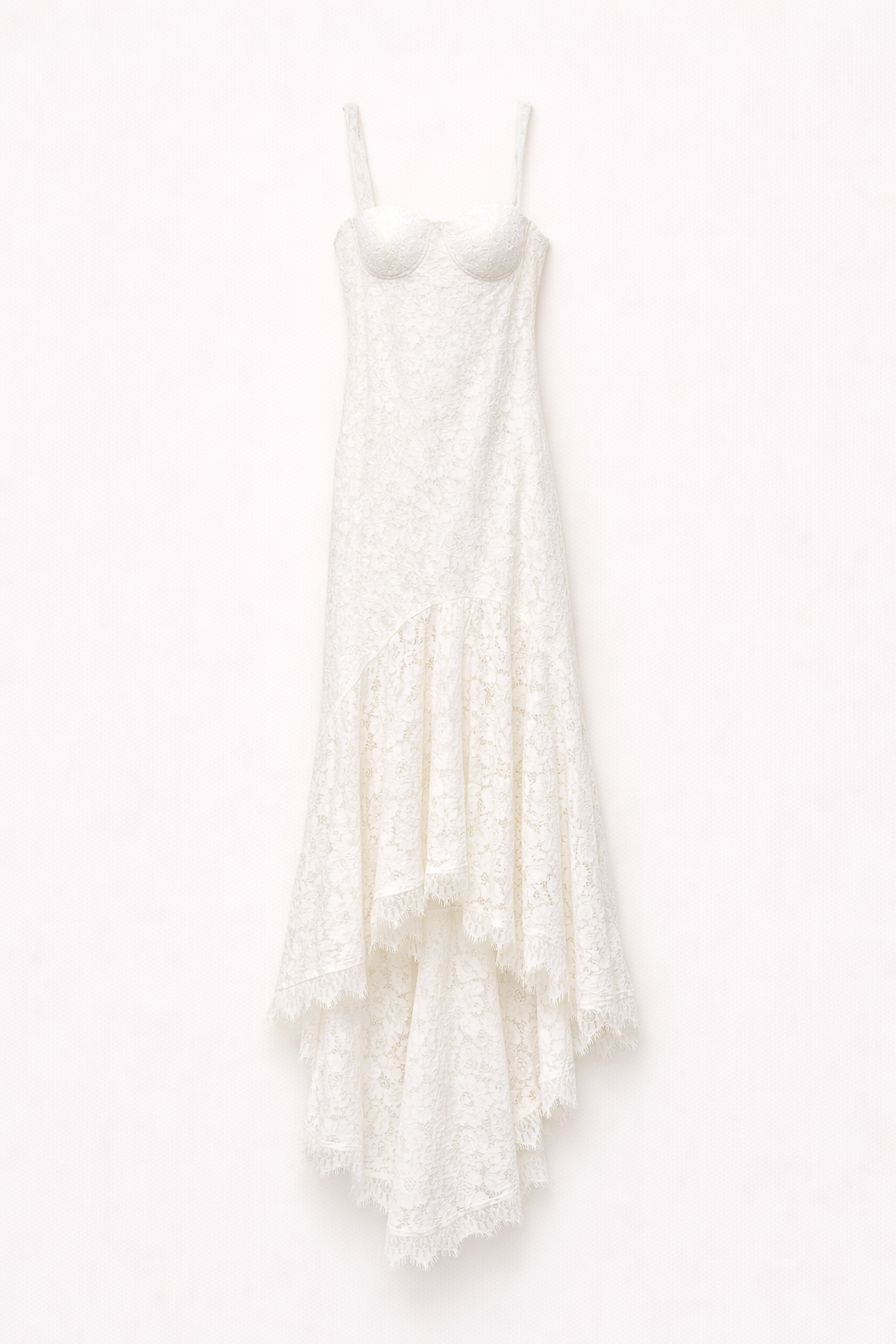 Bottom flounce with mermaid cut.