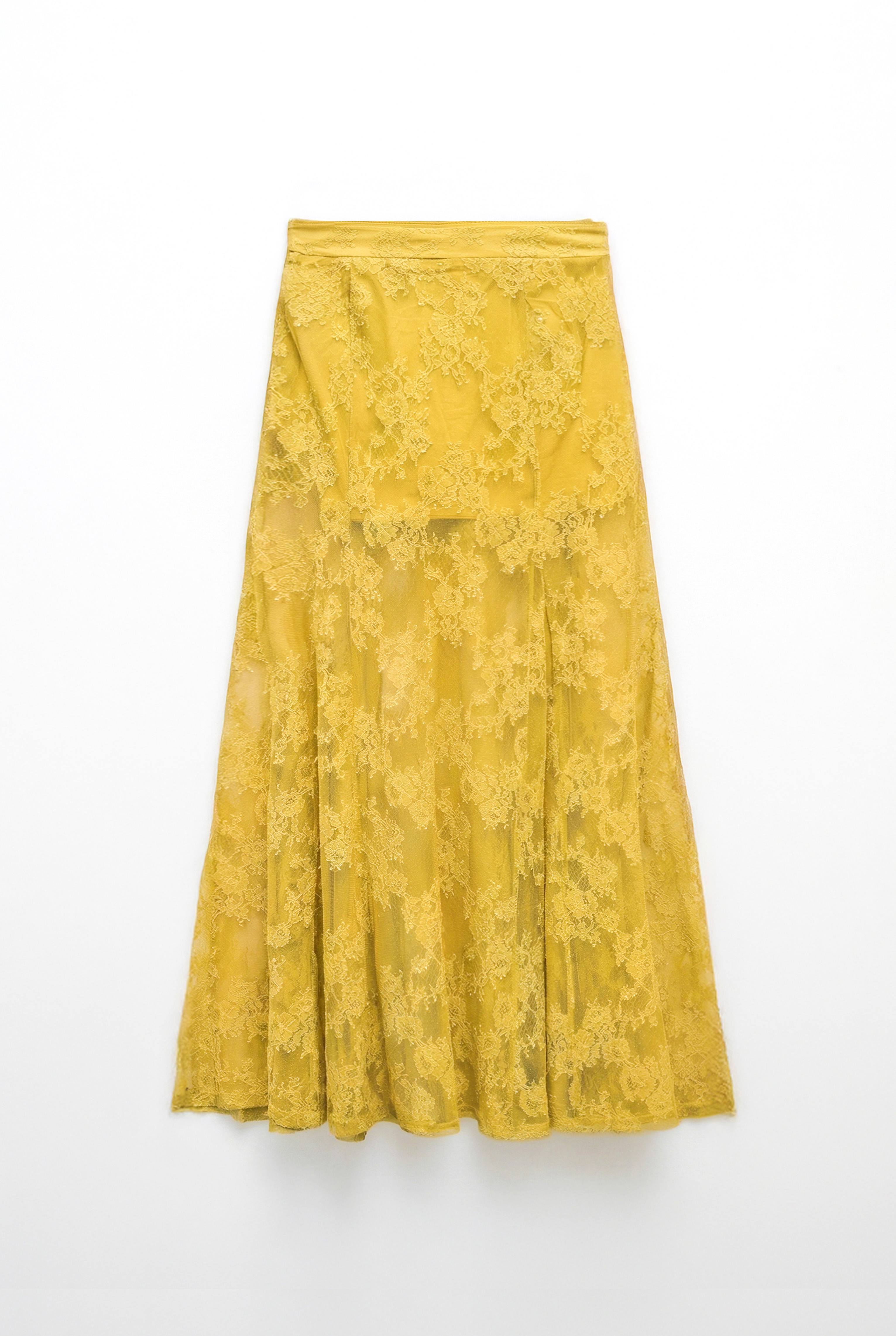 Long floral lace skirt.