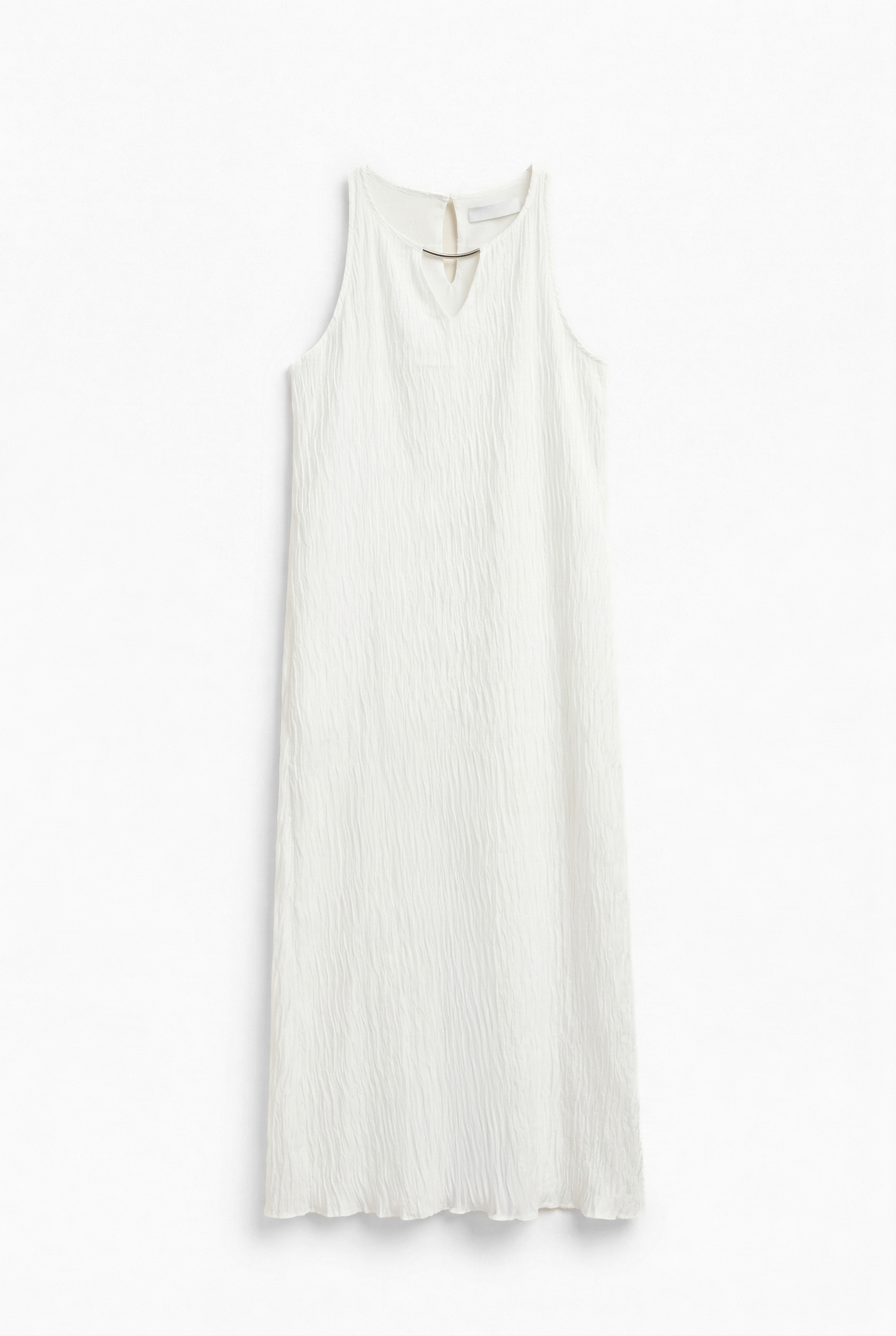 Long dress in pleated fabric.