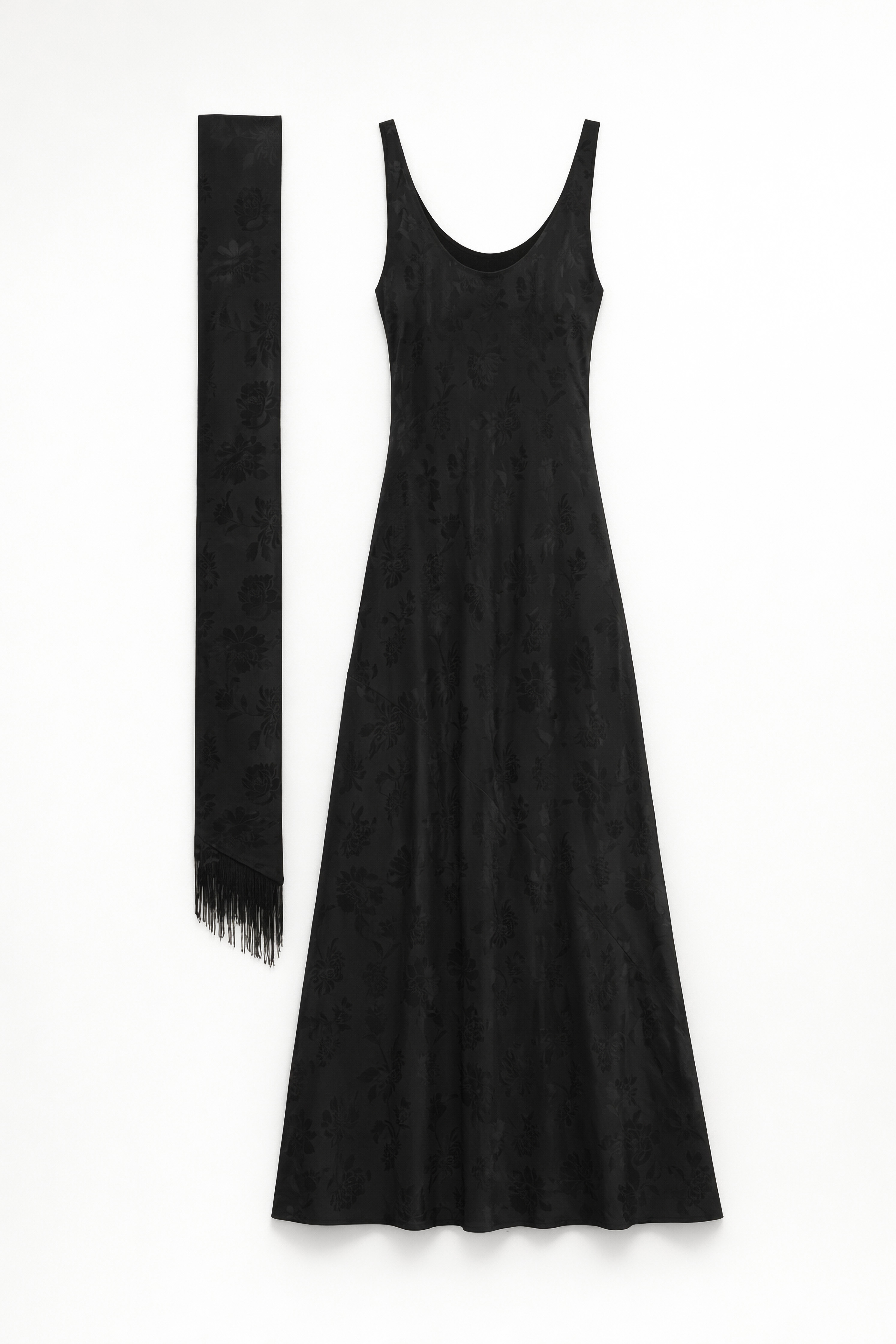 Long dress in jacquard fabric with floral motif.