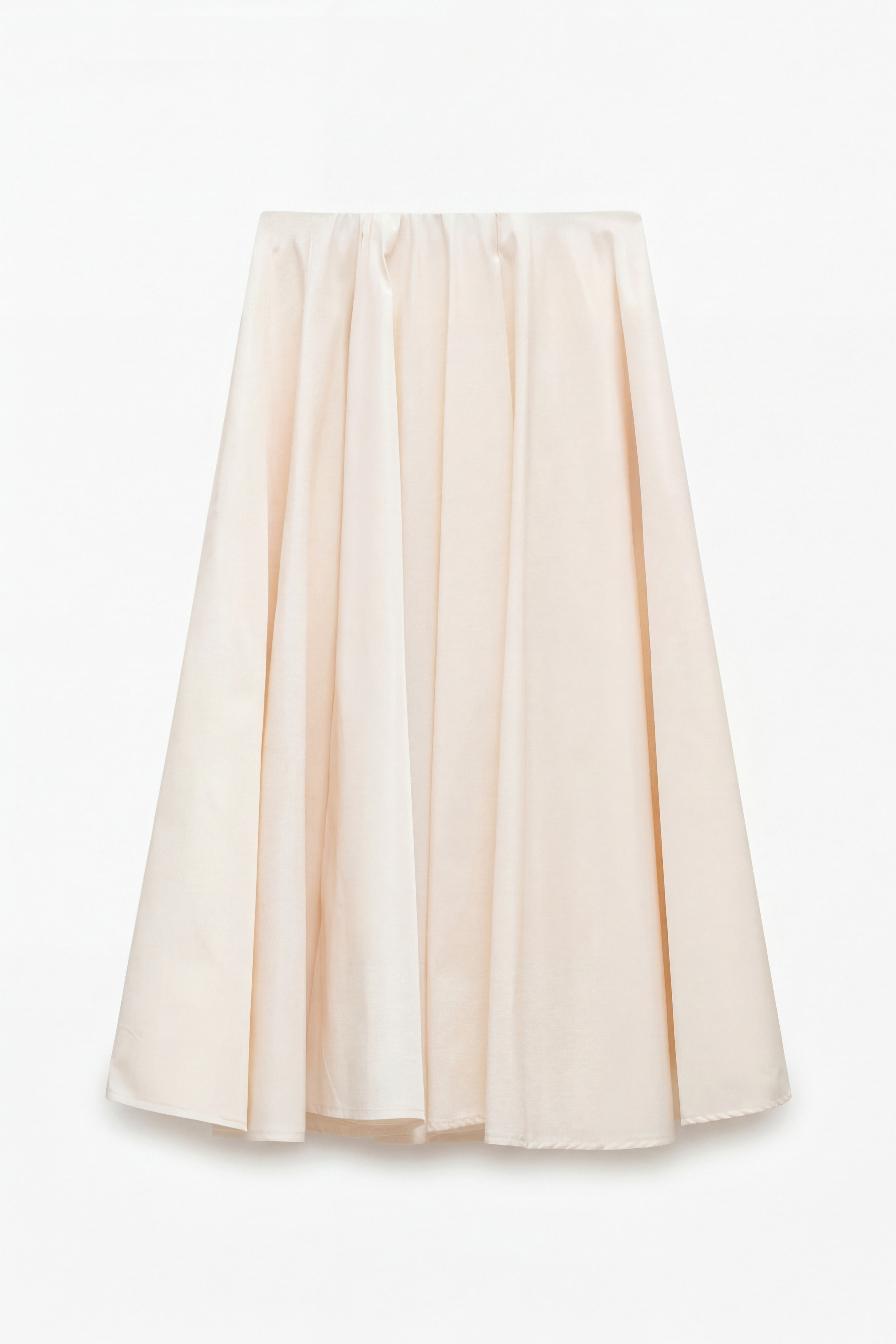 Midi skirt in lyocell blend fabric. High waist with gathered elastic. Side pockets inserted into the hips. Wide and slightly flared line. Regular fit, available in size S/M, M/L.