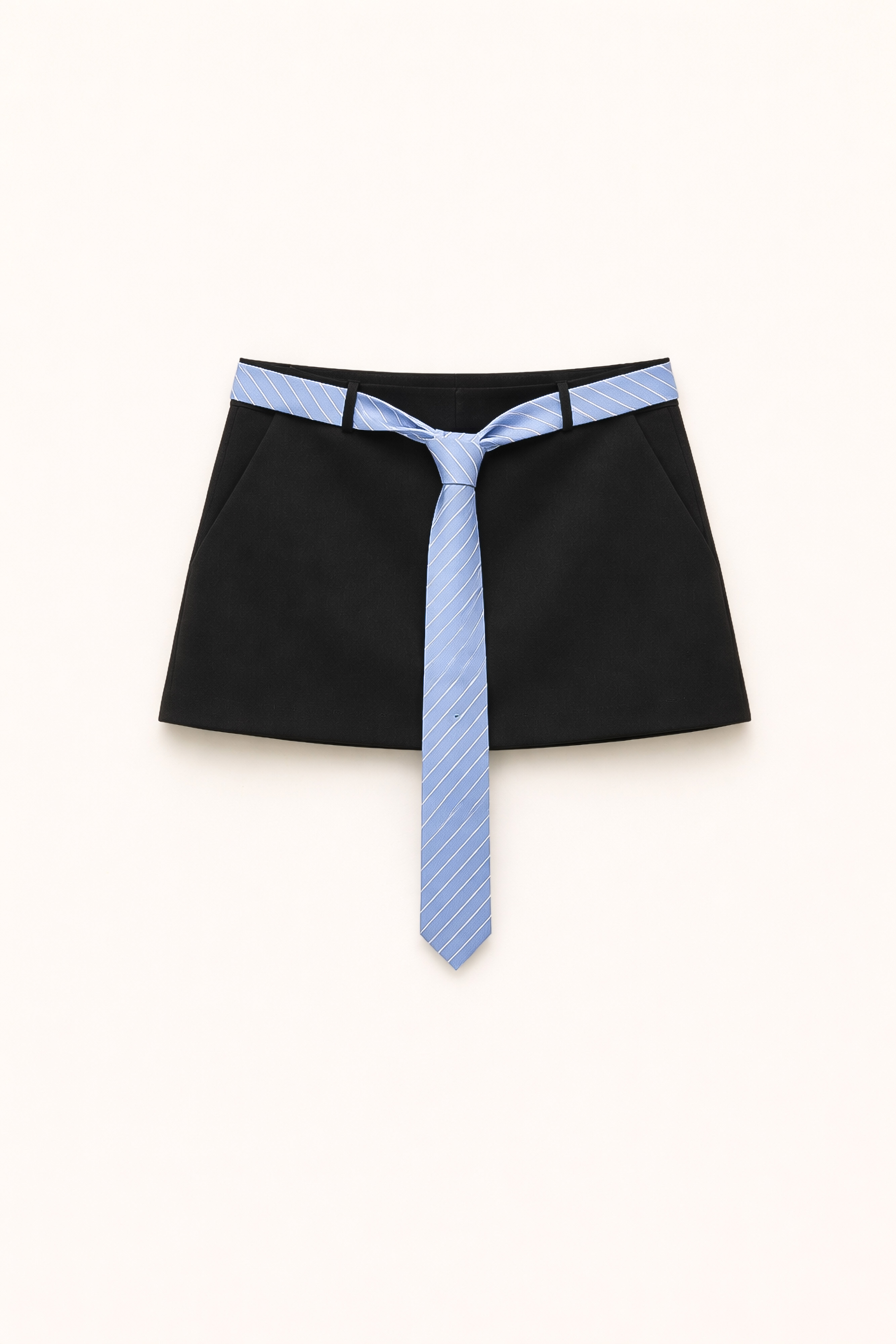 Mini skirt with decorative striped tie belt.