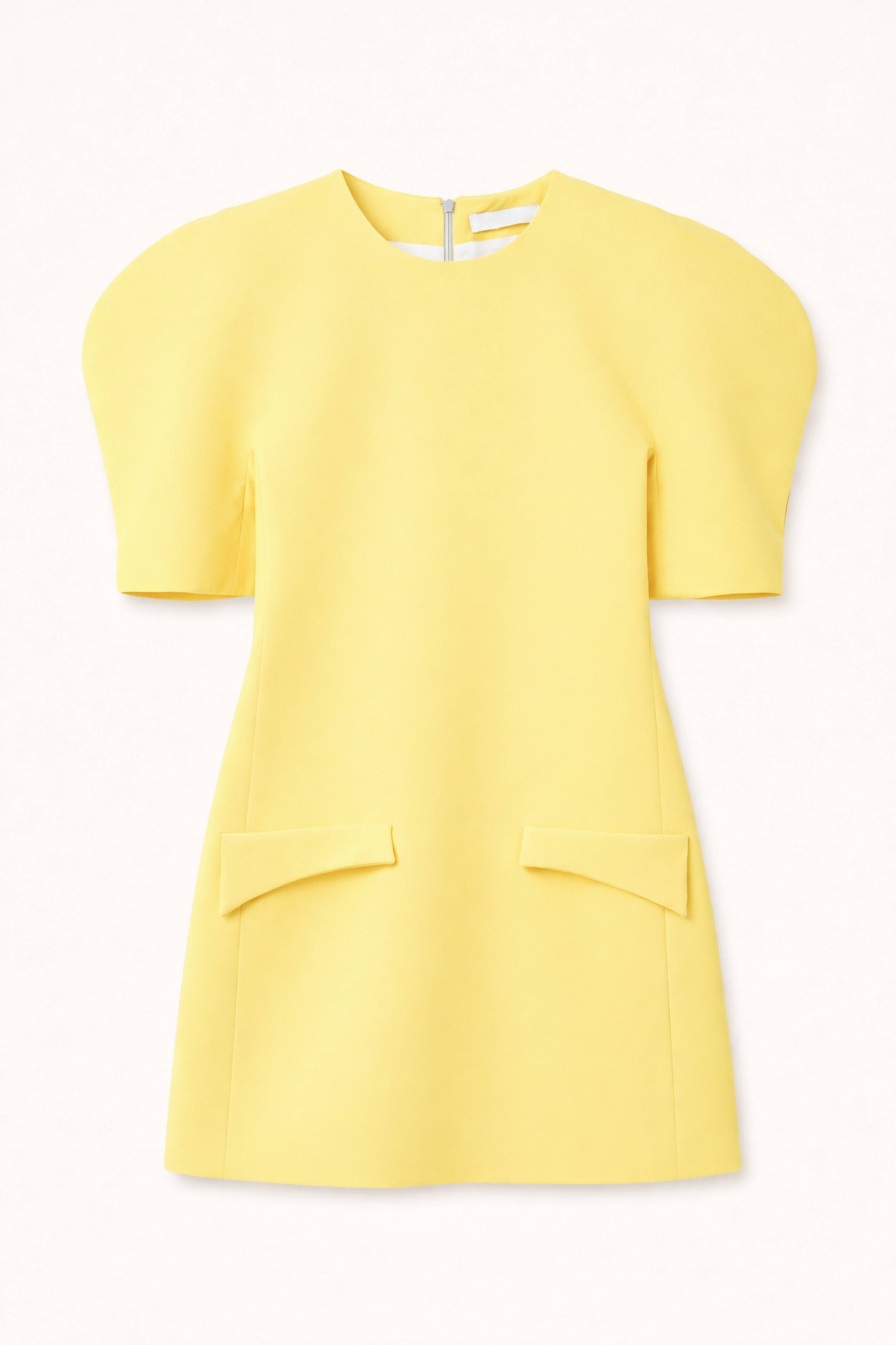Short dress in viscose blend. Short sleeve integrated into the shoulder line. Fake patch pockets on the front with decorative flap. Inner lining. Invisible zip closure on the back. Regular fit, available in size S, M, L.