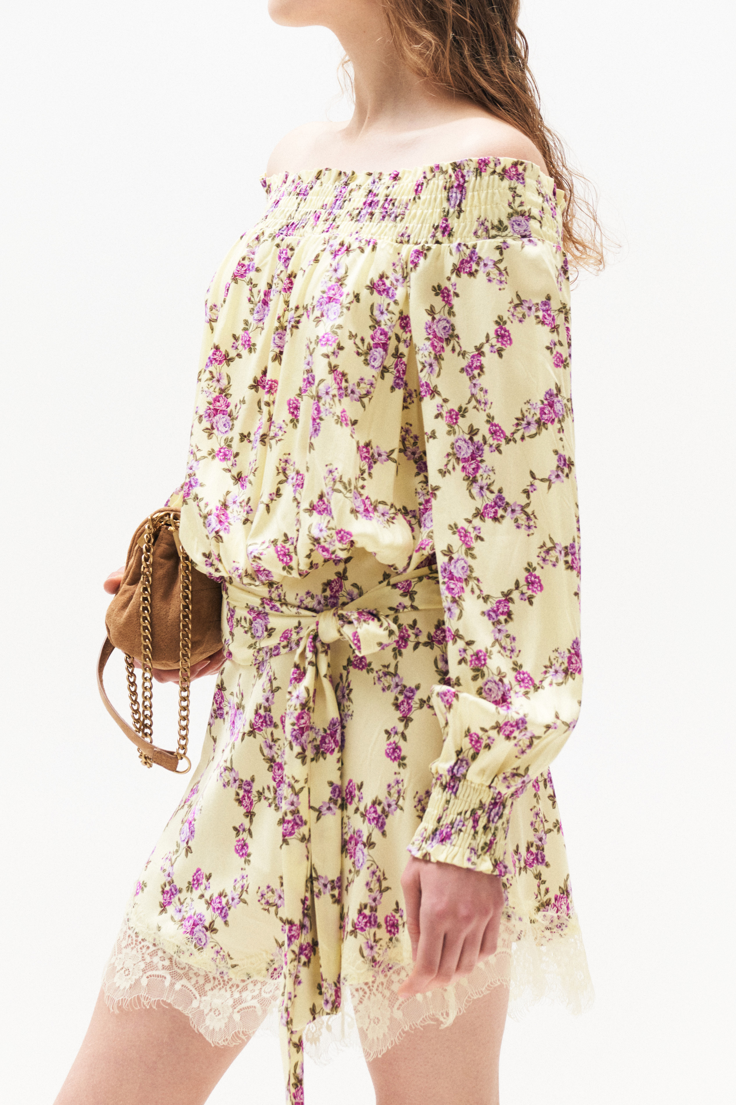 Mini bustier dress with floral print.