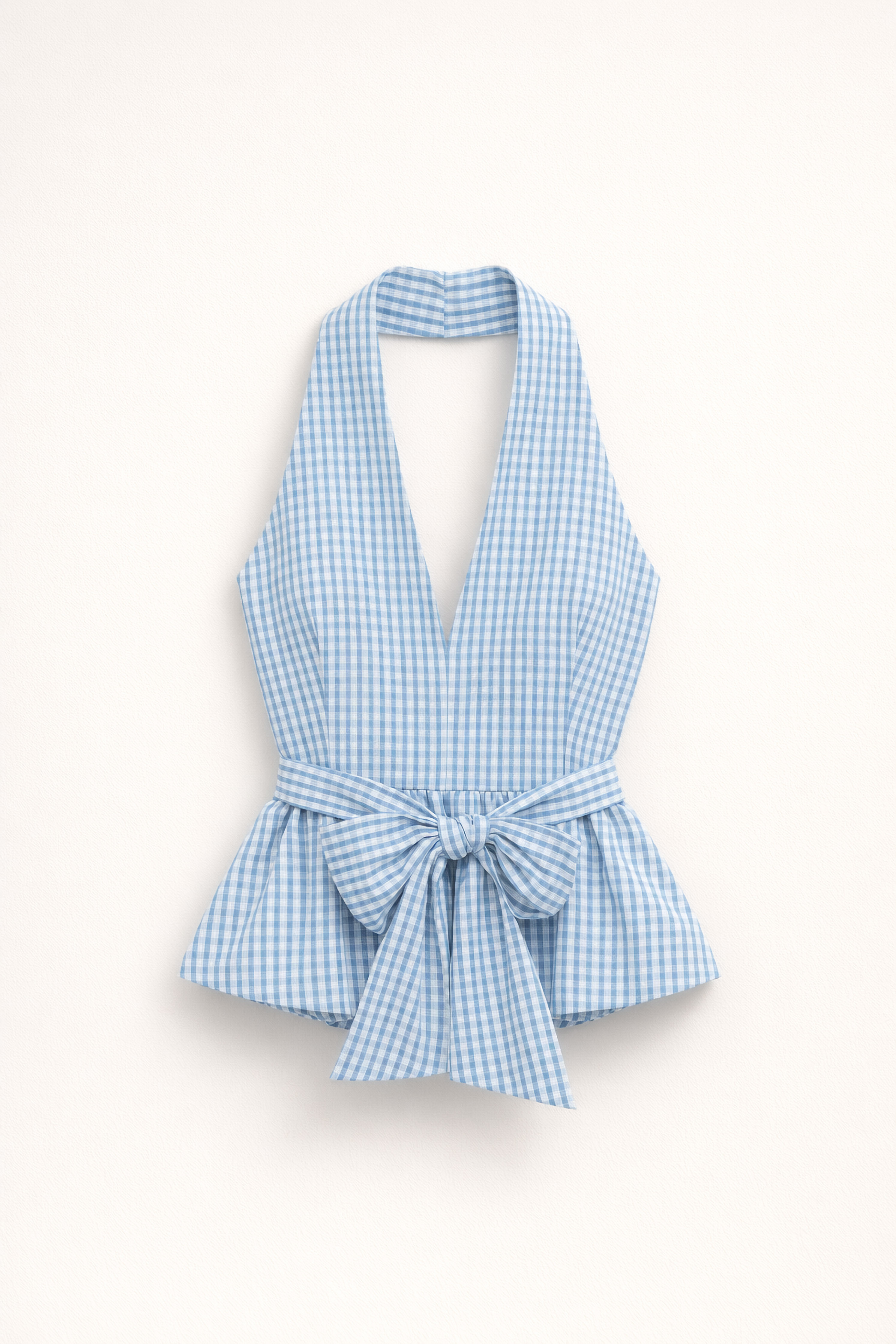 Adjustable halter neckline with bow.