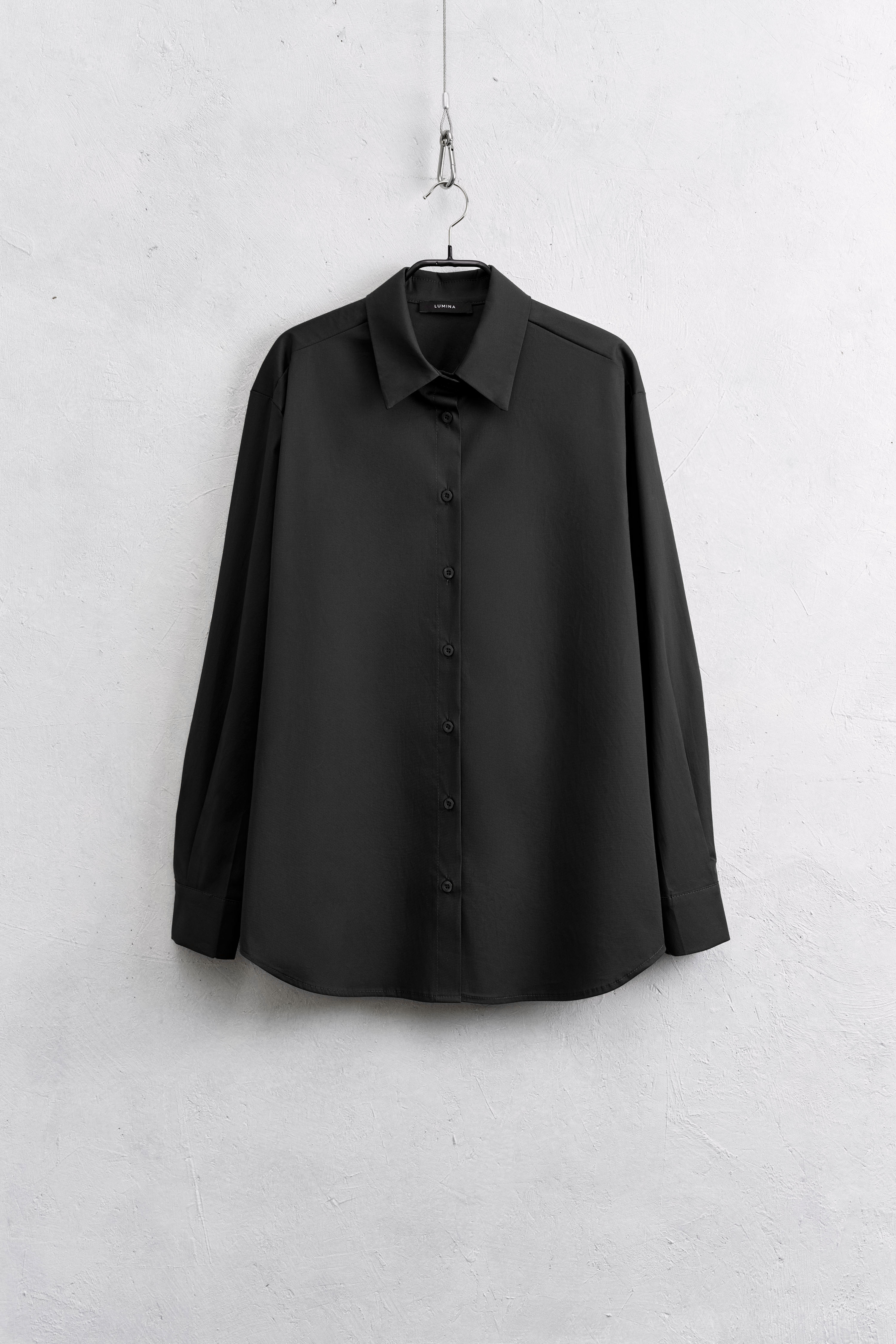 Classic pointed collar. Long sleeves.