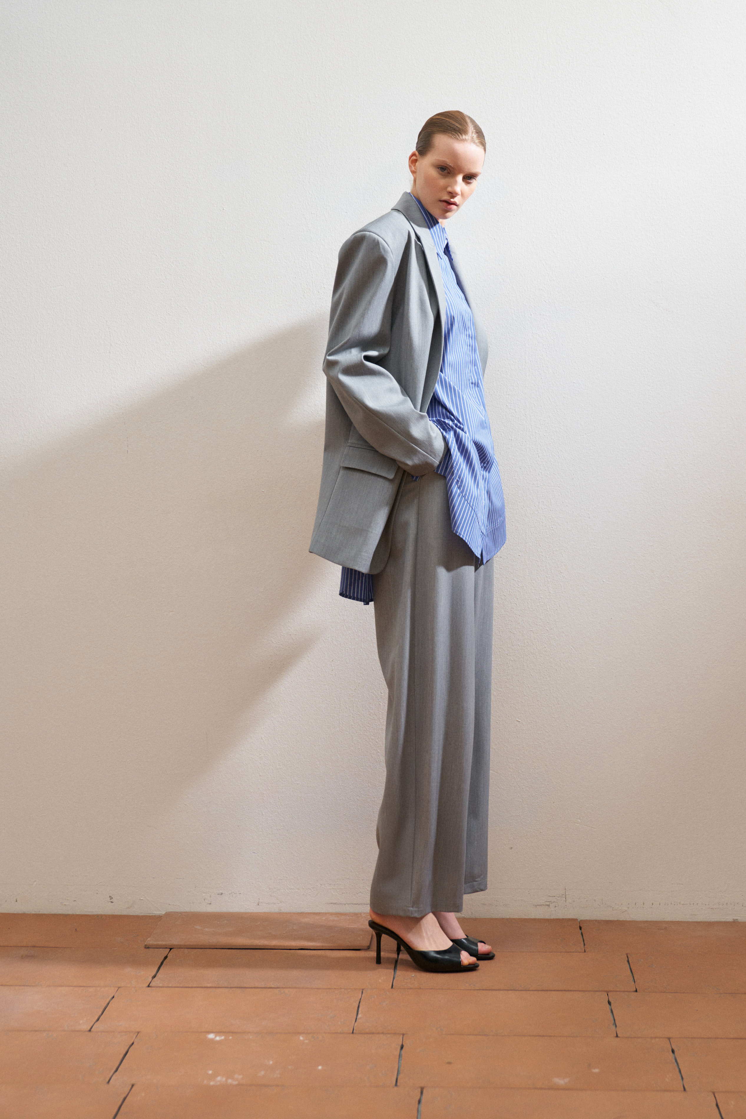 Classic pointed collar. Long sleeves.