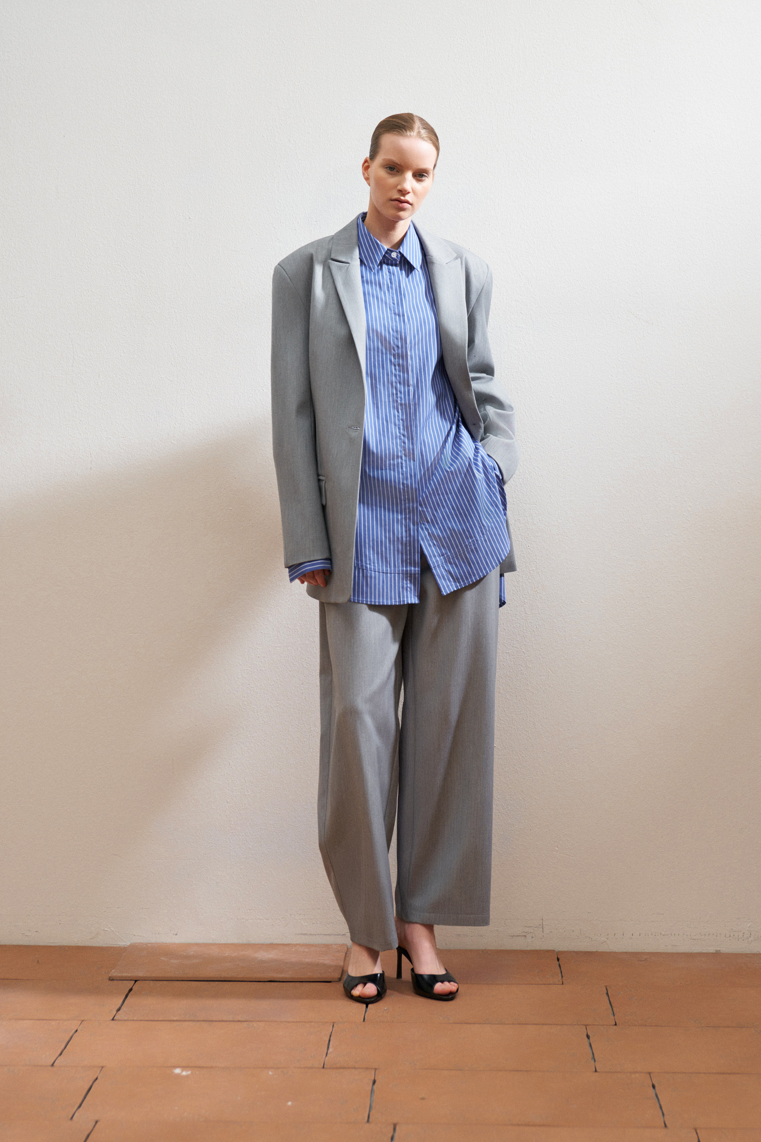 Oversized shirt with striped pattern.