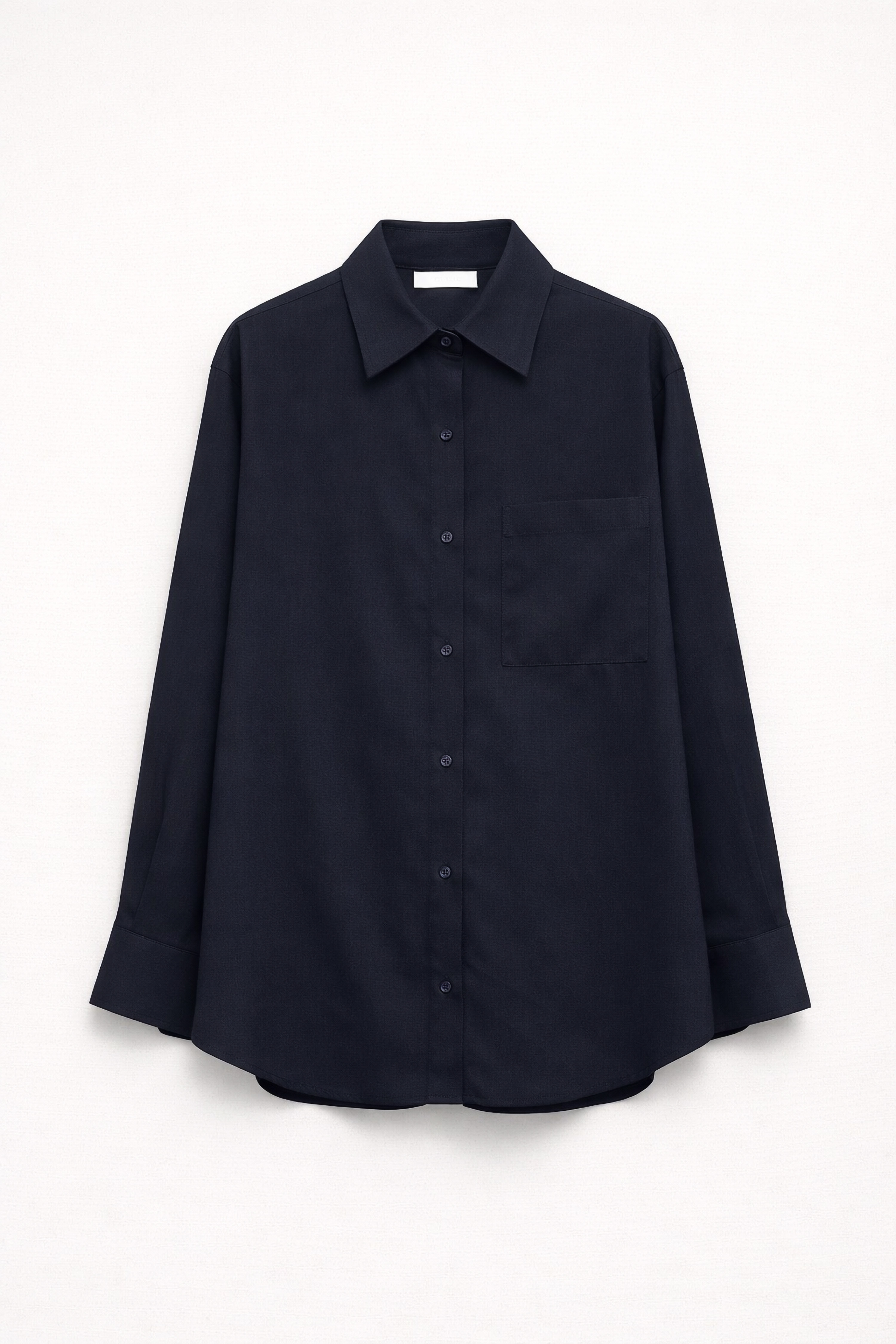 Patch pocket on the chest. Slightly rounded hem.