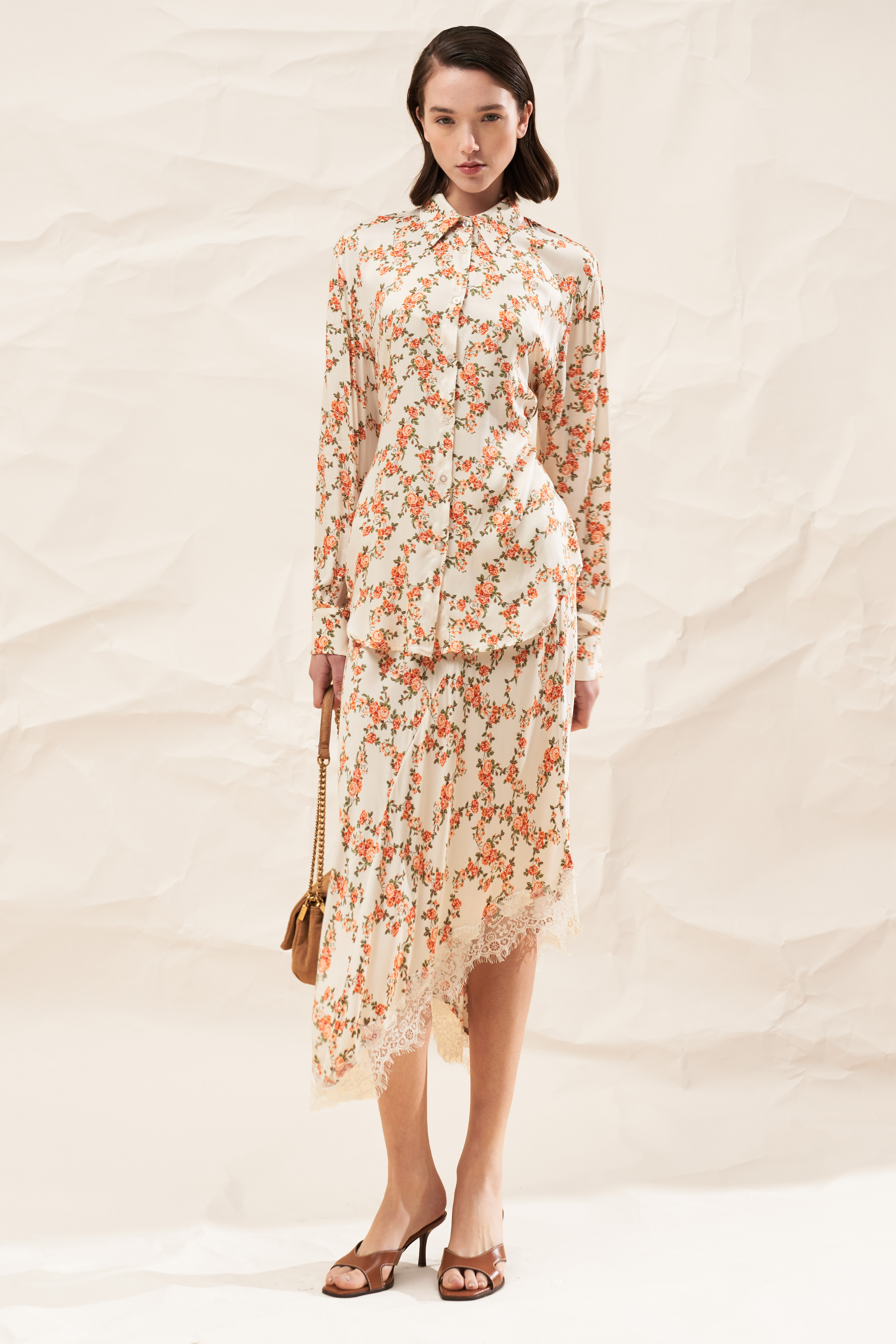 All-over floral print. Asymmetrical hem.