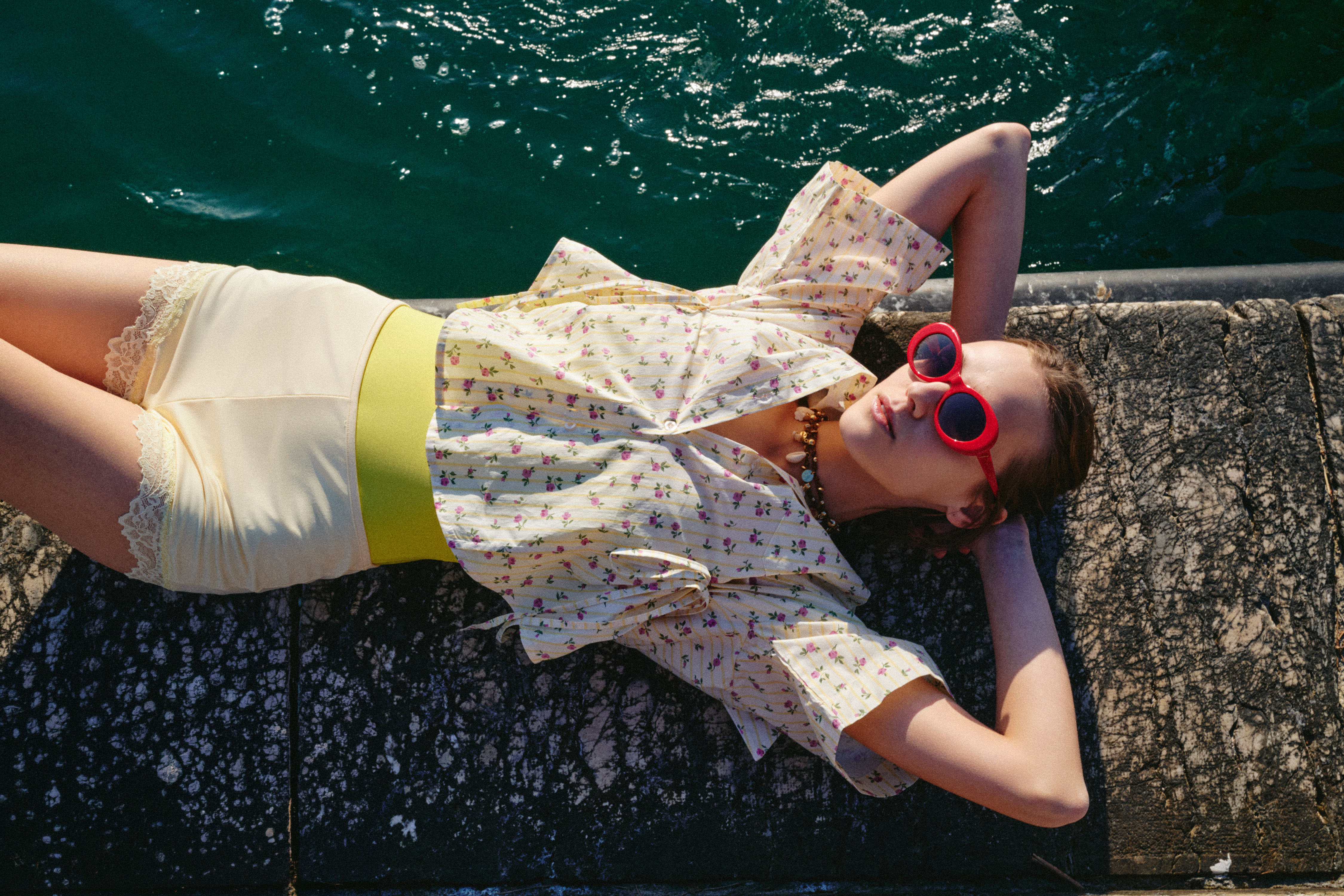Striped shirt with floral print.