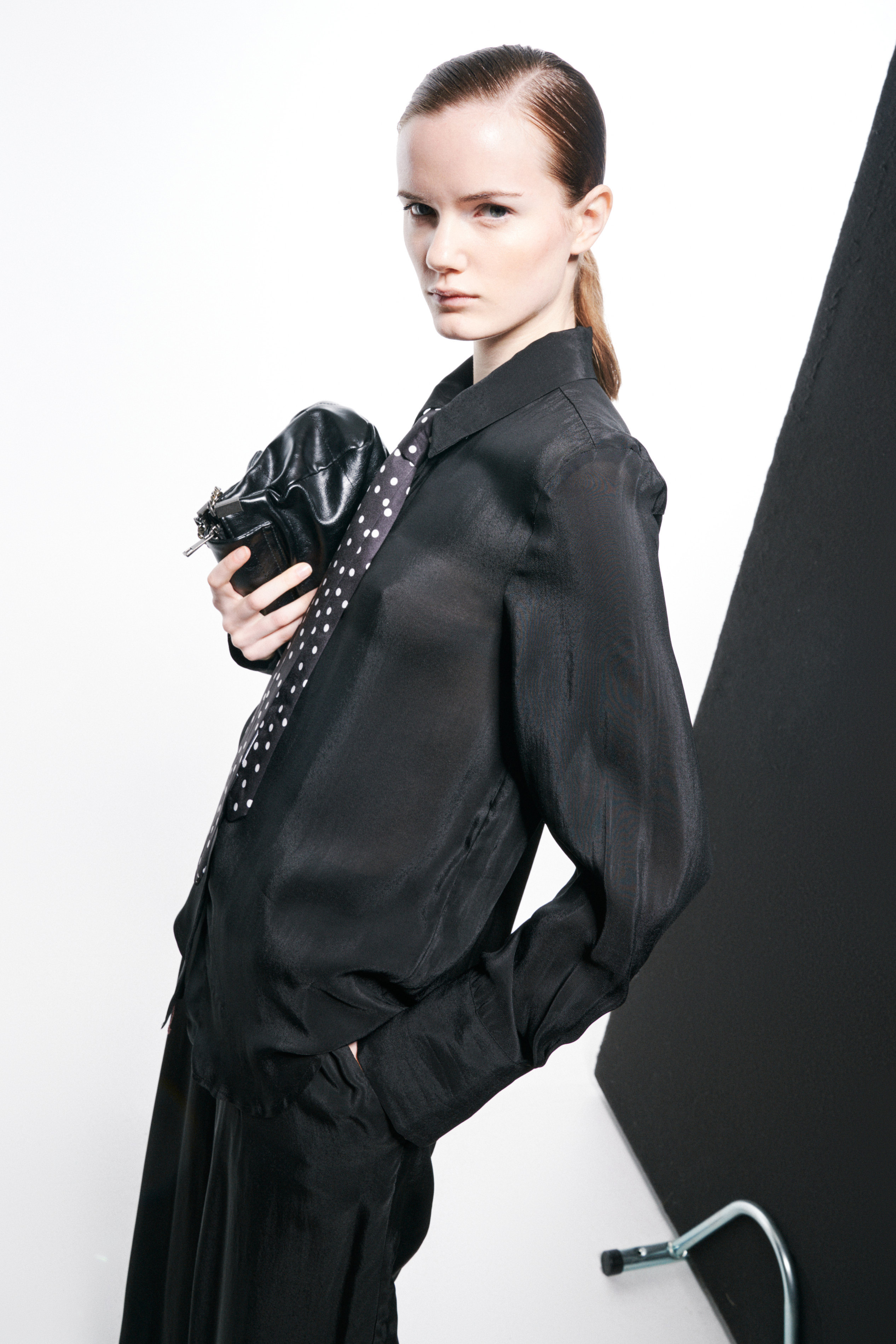 Classic pointed collar. Long sleeves.