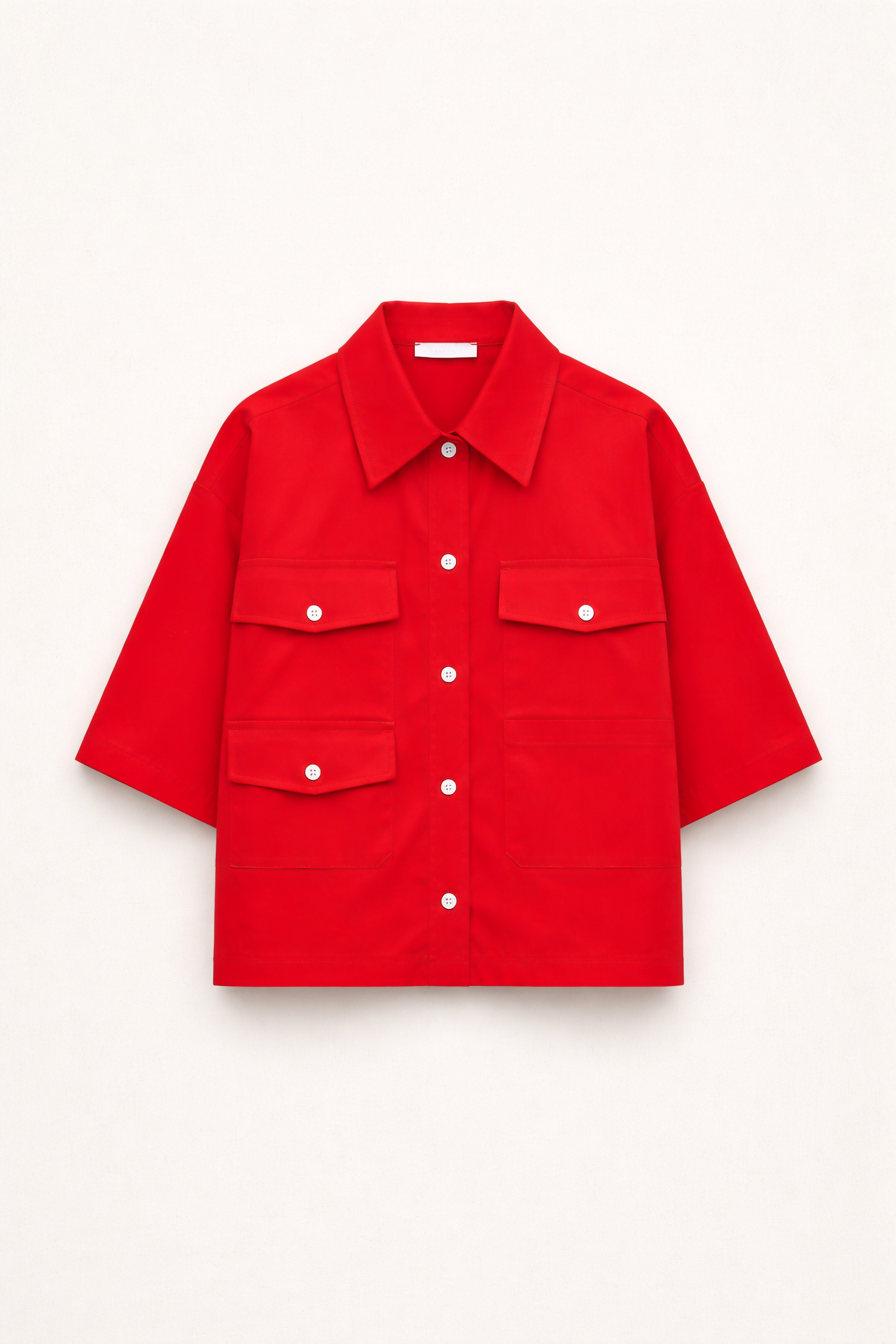 Pointed collar. Short sleeves. Patch chest pocket.