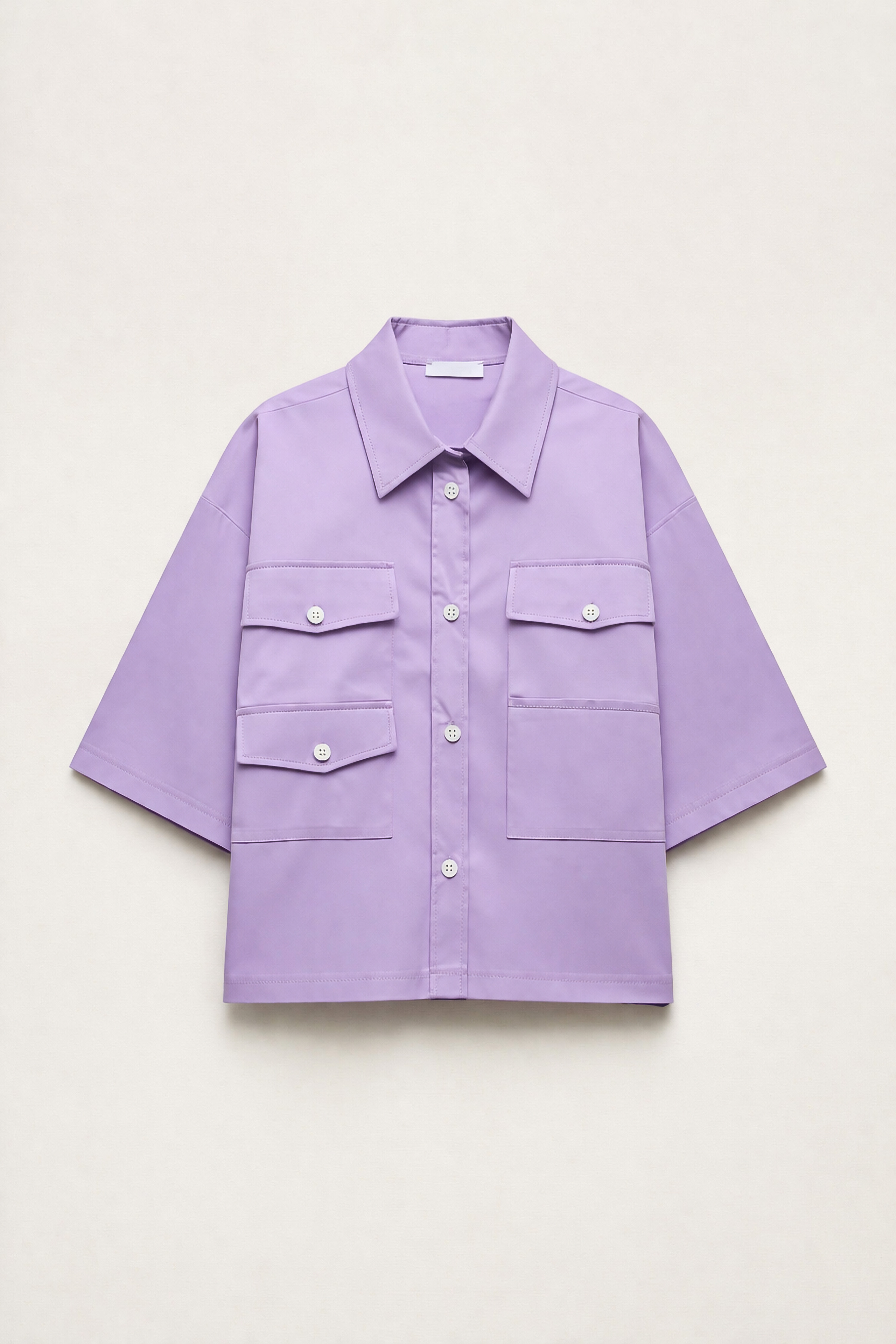 Pointed collar. Short sleeves. Patch chest pocket.