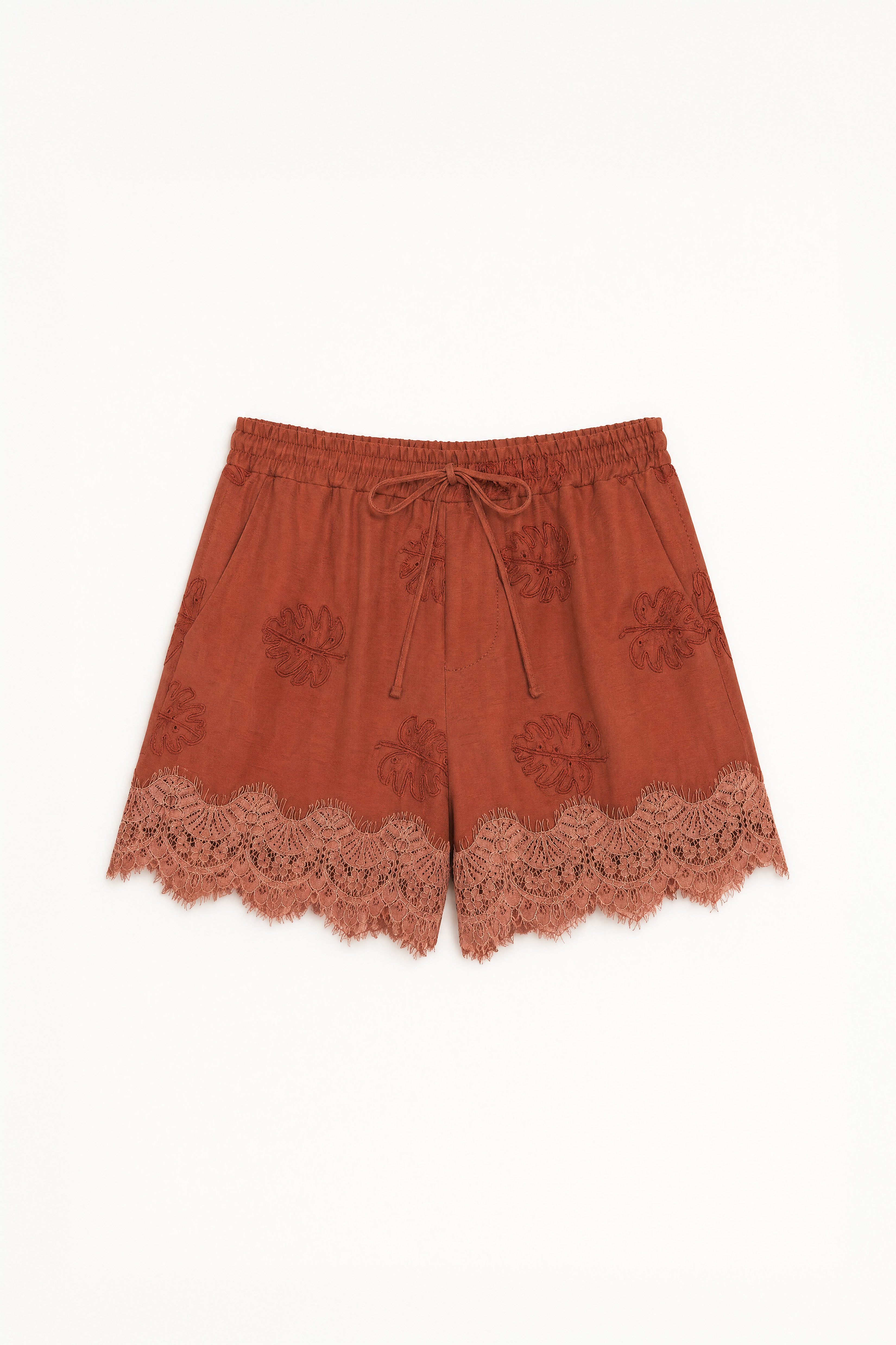 Linen blend shorts with raised embroidery.