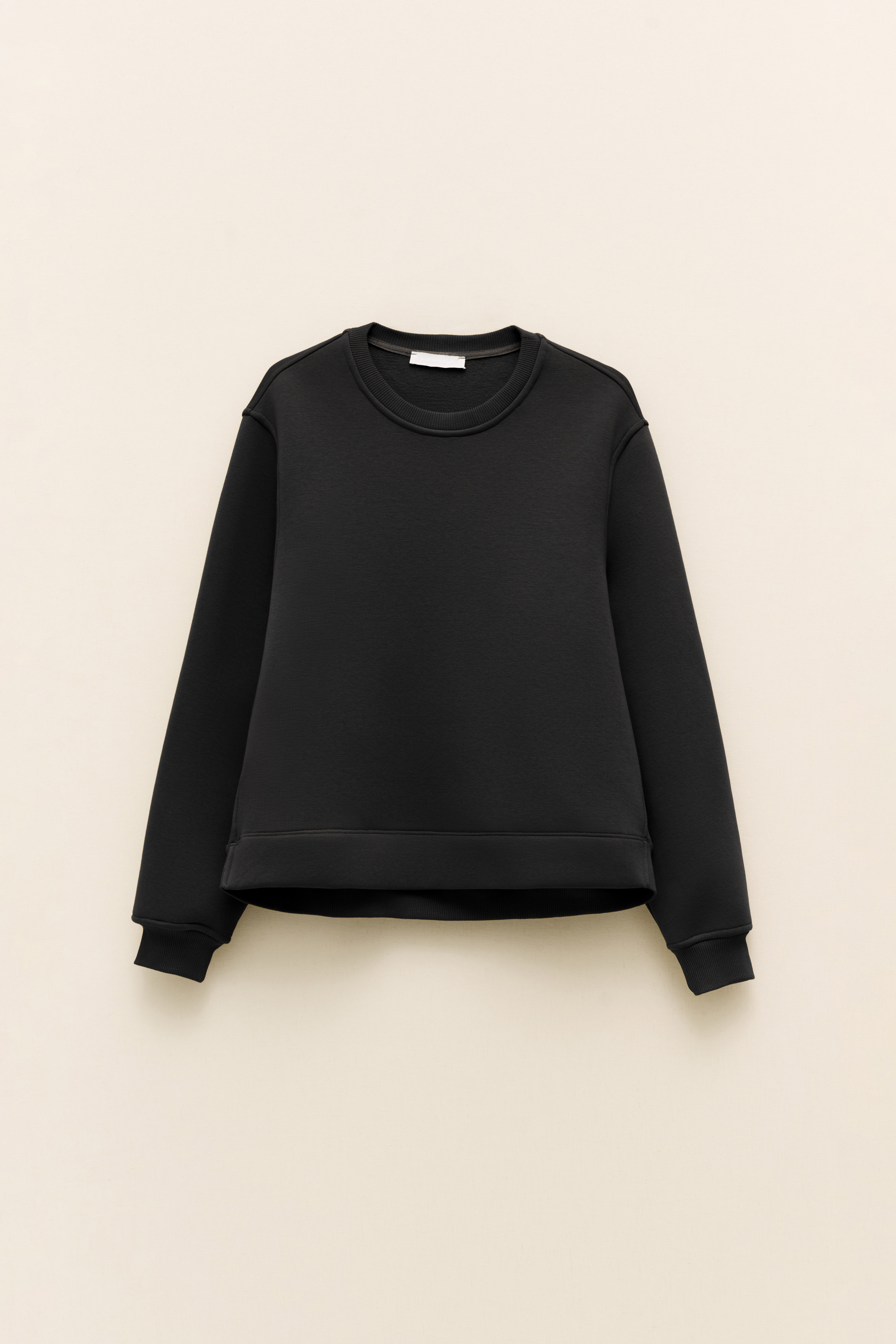 Crew neck and cuffs on the sleeves.